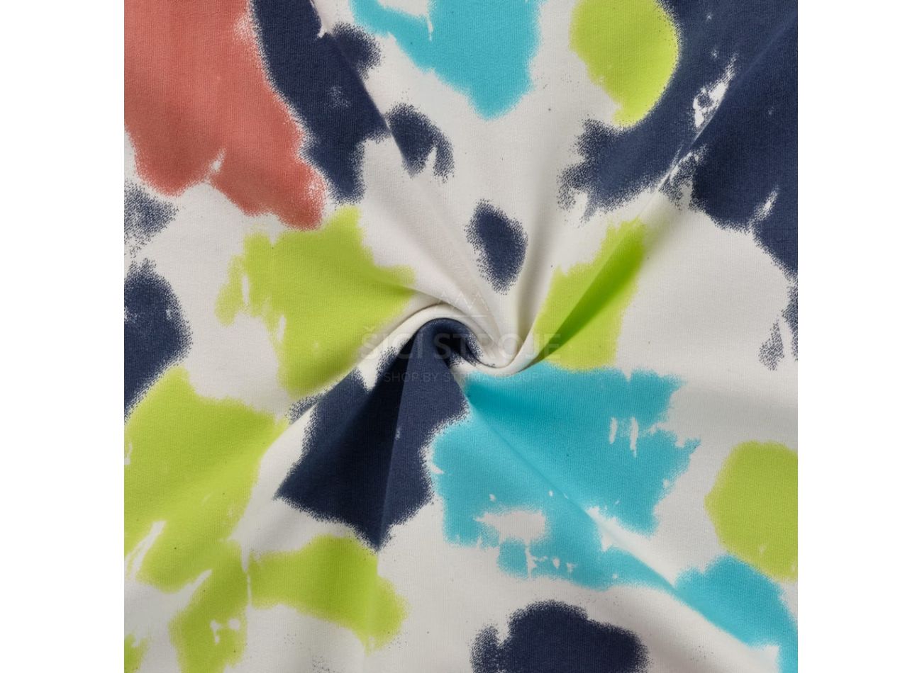 French Terry Print, 95% bavlna, 5% elastan, minimálna šírka 145 cm, gramáž 230 g/m2, vzor tie dye, farba print denim