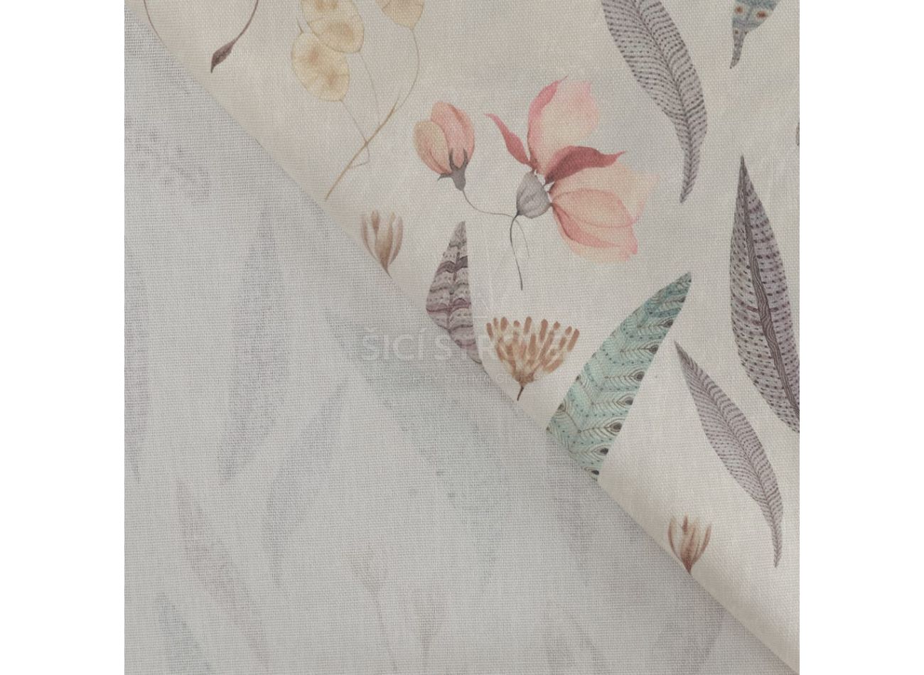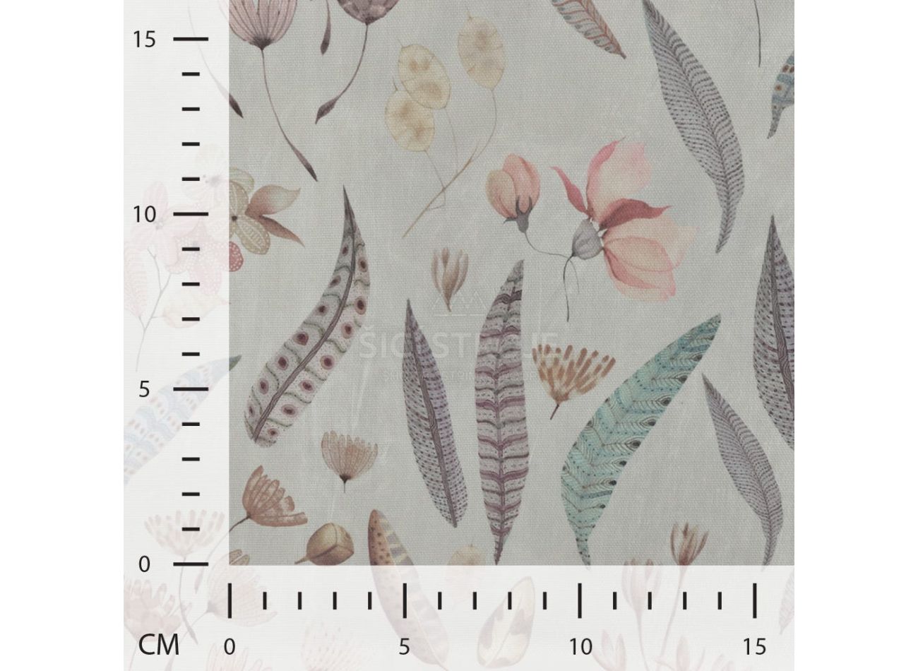 Half Panama Digital, 100% bavlna, minimálna šírka 135 cm, gramáž 190 g/m2, vzor flowers & leaves (intan 1)