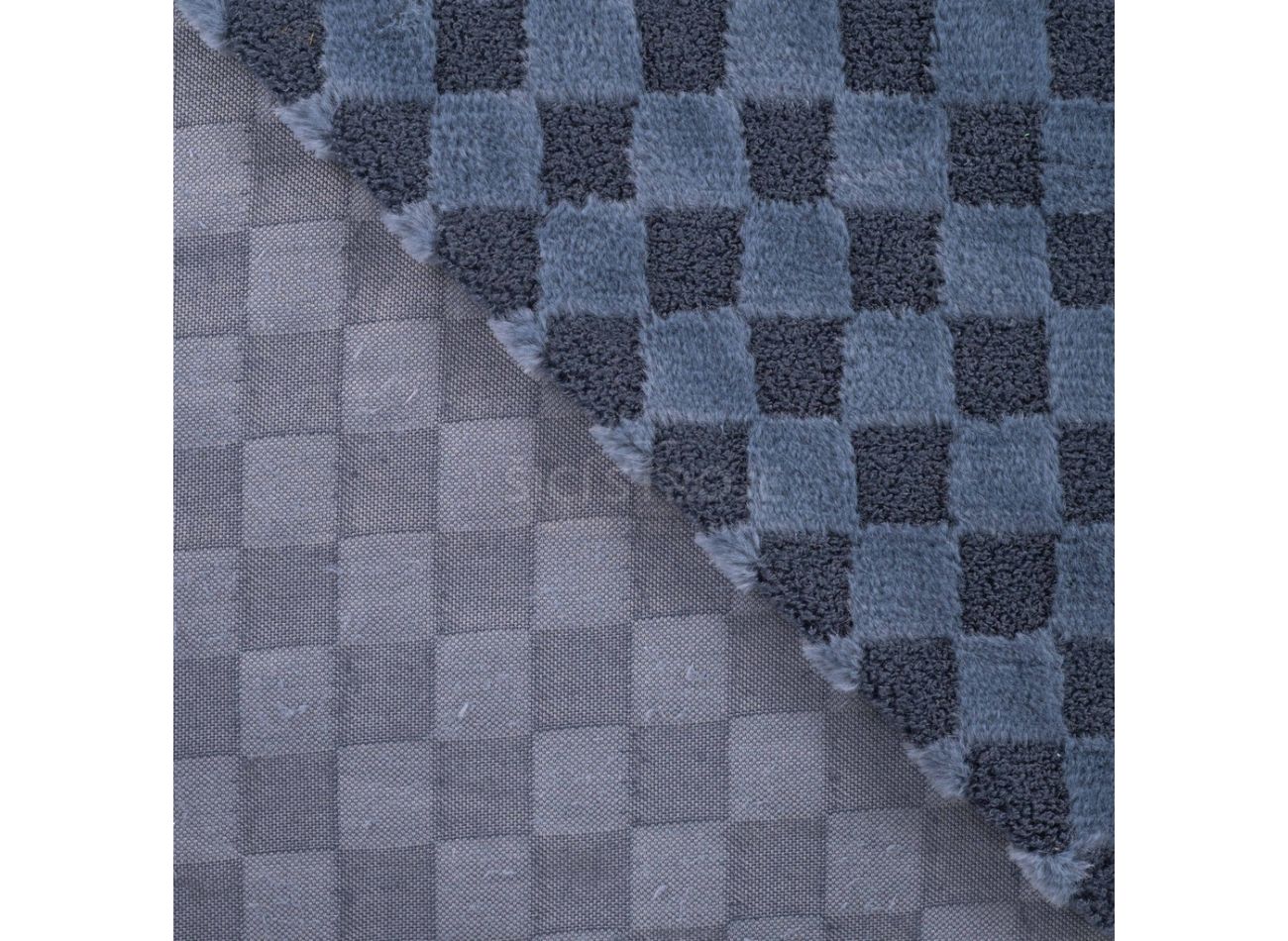 High Low Checked Fur, 100% polyester, minimálna šírka 155 cm, gramáž 440 g/m2, farba denim