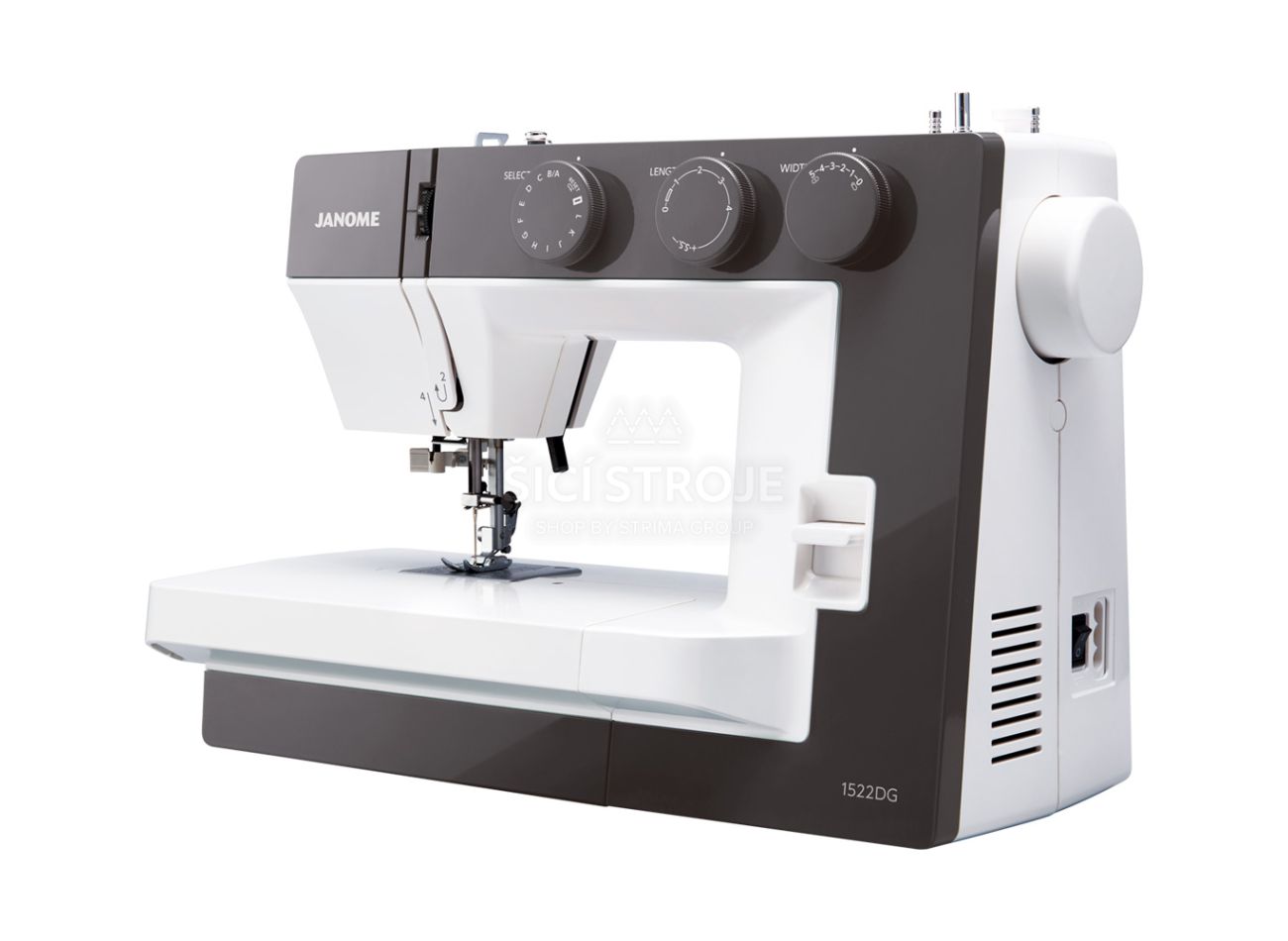 Mechanický šijací stroj Janome 1522 DG, je robustný šijací stroj s kovovou konštrukciou, 25 programov vrátane overlockových a dekoratívnych stehov, automatickú gombíkovú dierku, reguláciu prítlaku pätky, voľné rameno, LED osvetlenie.