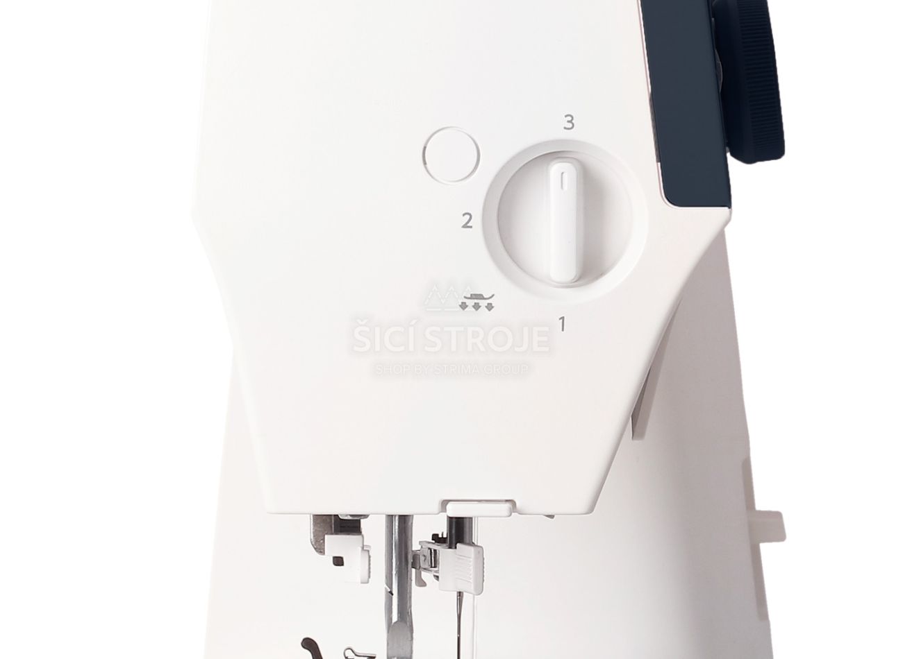 Ďalšou pozoruhodnou vlastnosťou Janome 1522 je nastaviteľný trojstupňový prítlak pätky. Vďaka tejto funkcii môžete voľne šiť akýkoľvek druh látky. Nezáleží na tom, či budete šitý tenké, veľmi jemné látky, látky rôznej hrúbky a roztiahnutia, kožu alebo niekoľko vrstiev džínsoviny. Nastavením tlaku prítlačnej pätky uľahčíte látke pohyb pri šití, nedôjde k nadmernému rozťahovaniu látky, šitiu na mieste alebo poškodeniu jej štruktúry, ale výsledný steh bude vyzerať perfektne.