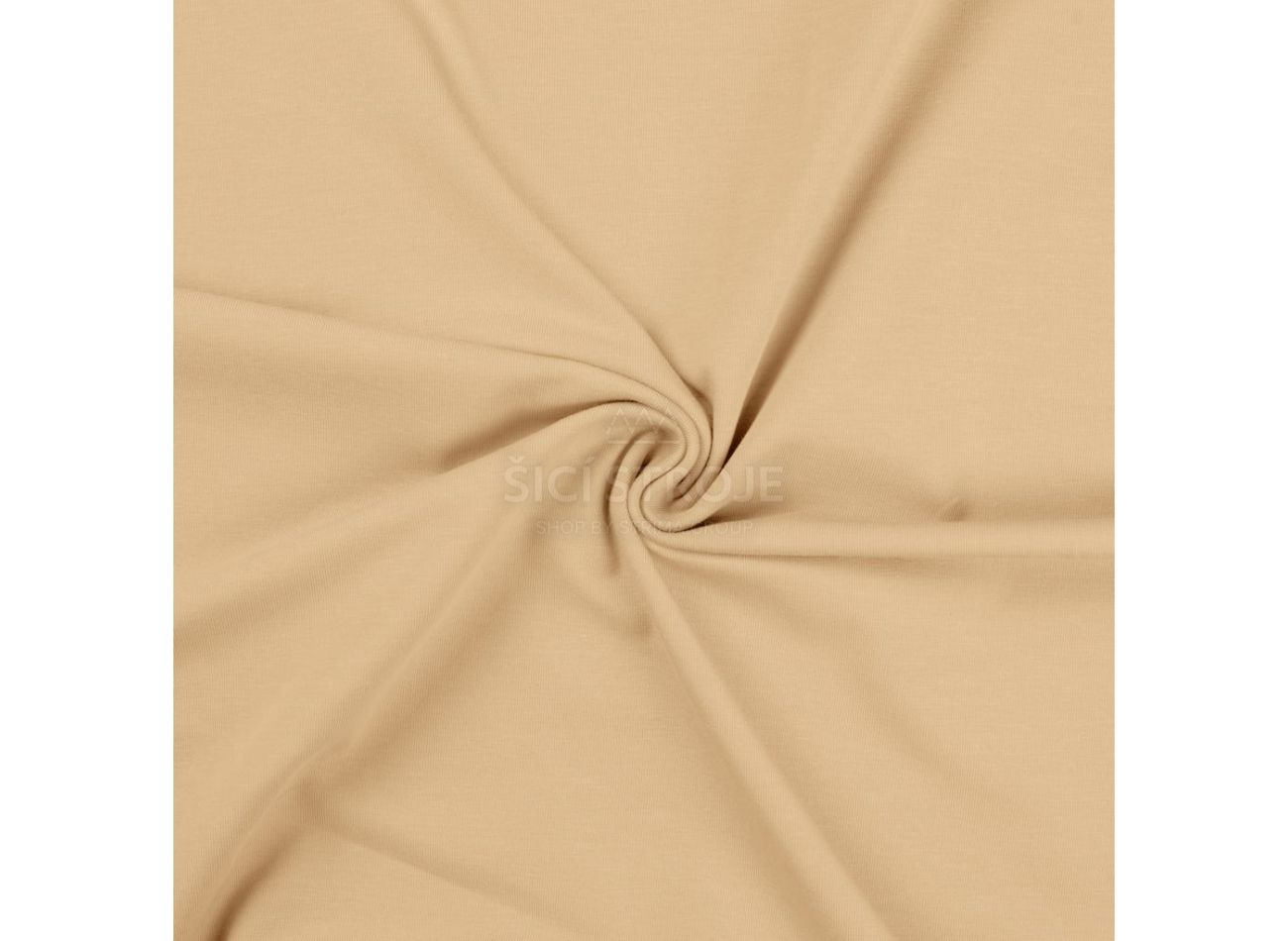 Jednofarebný bavlnený úplet s elastanom, 96% bavlna, 4% elastan, minimálna šírka 150 cm, gramáž 220 g/m2, farba champagne