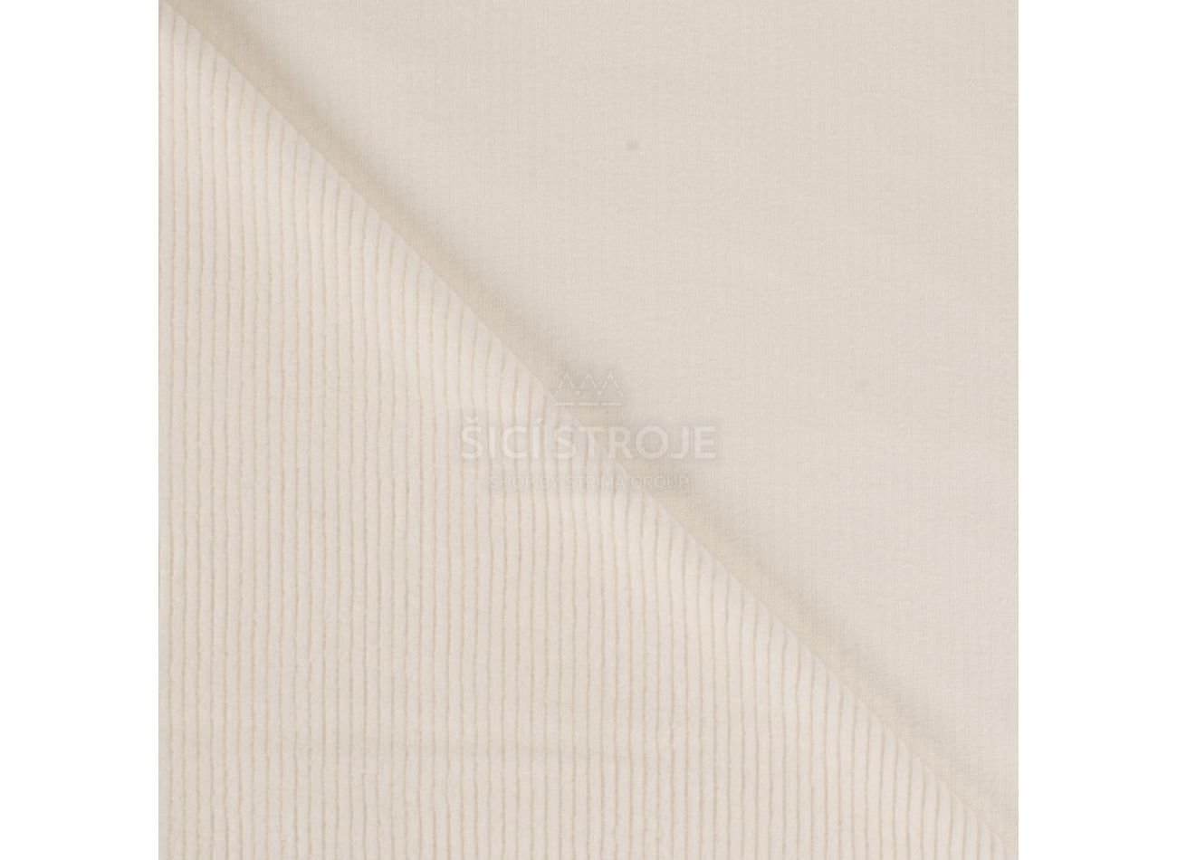 Jersey Cord Florida, 78% bavlna, 17% polyester, 5% elastan, minimálna šírka 150 cm, gramáž 320 g/m2, farba ecru