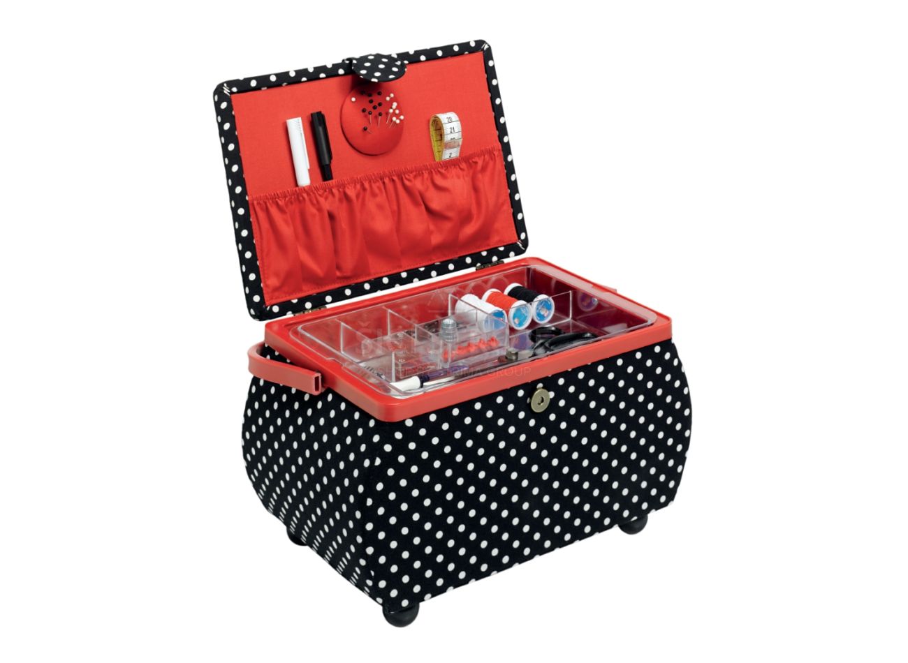 Kazeta na šitie čalúnená veľ. L s bodkami (čiernobiela, červená)
