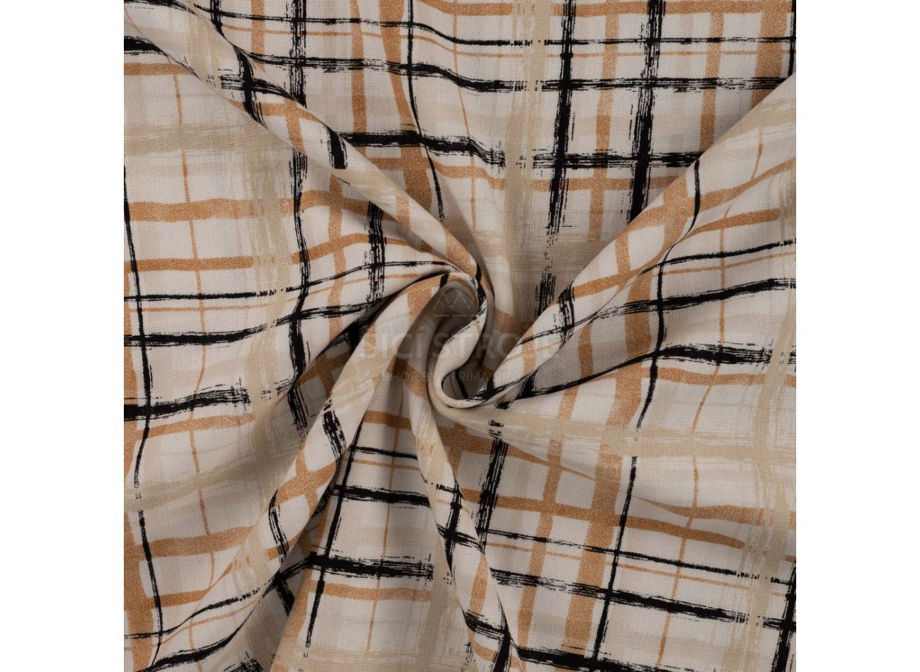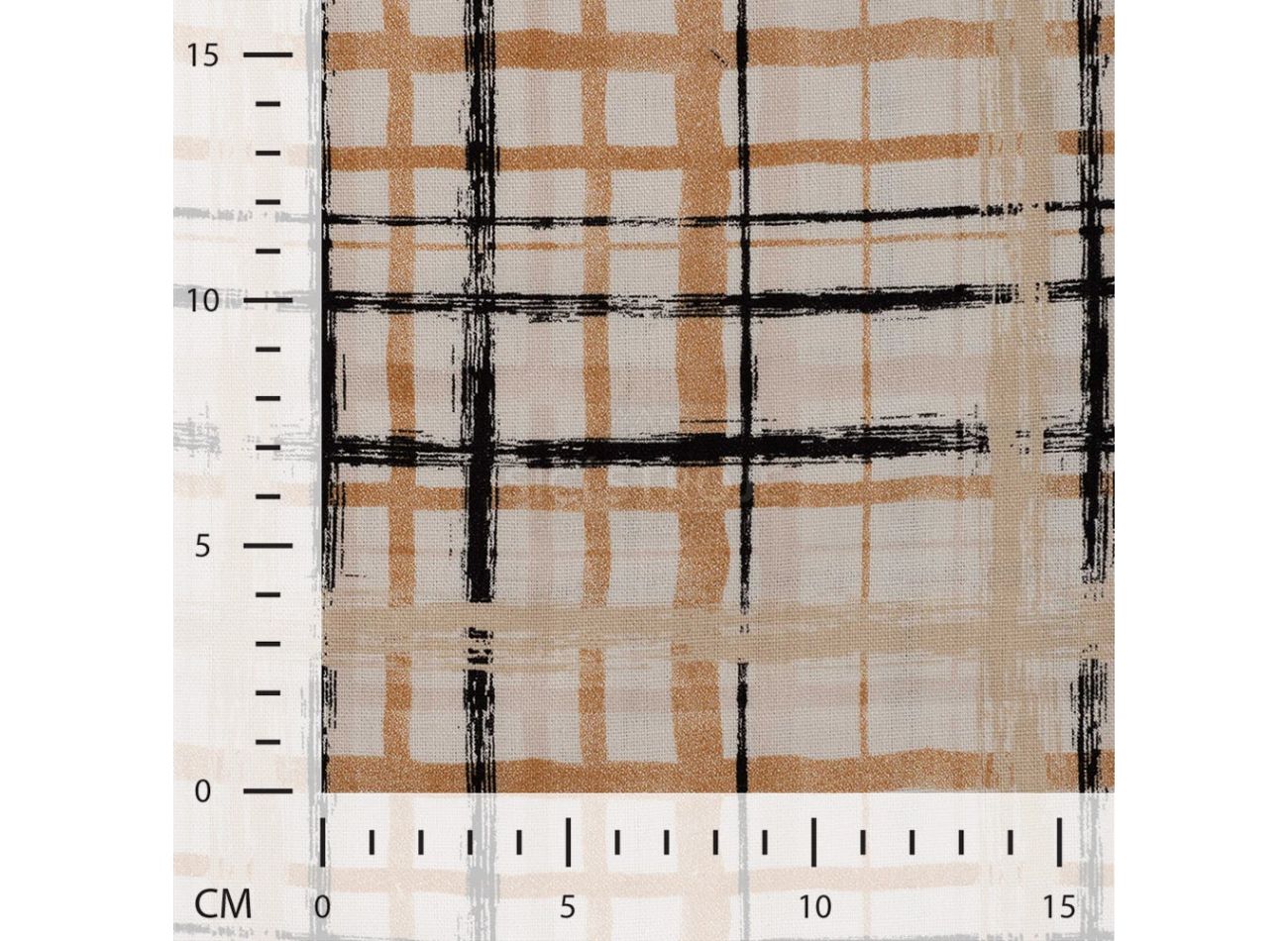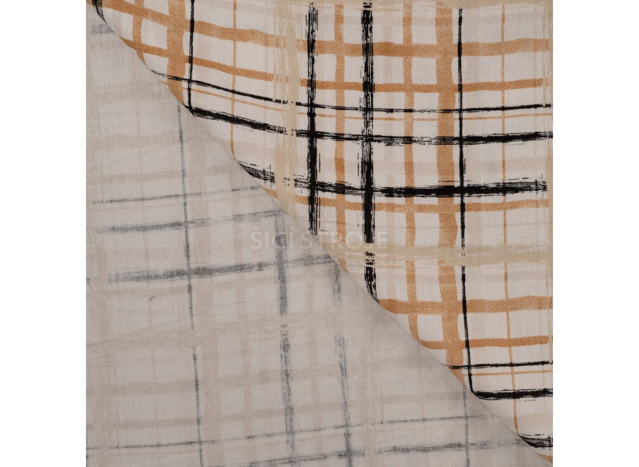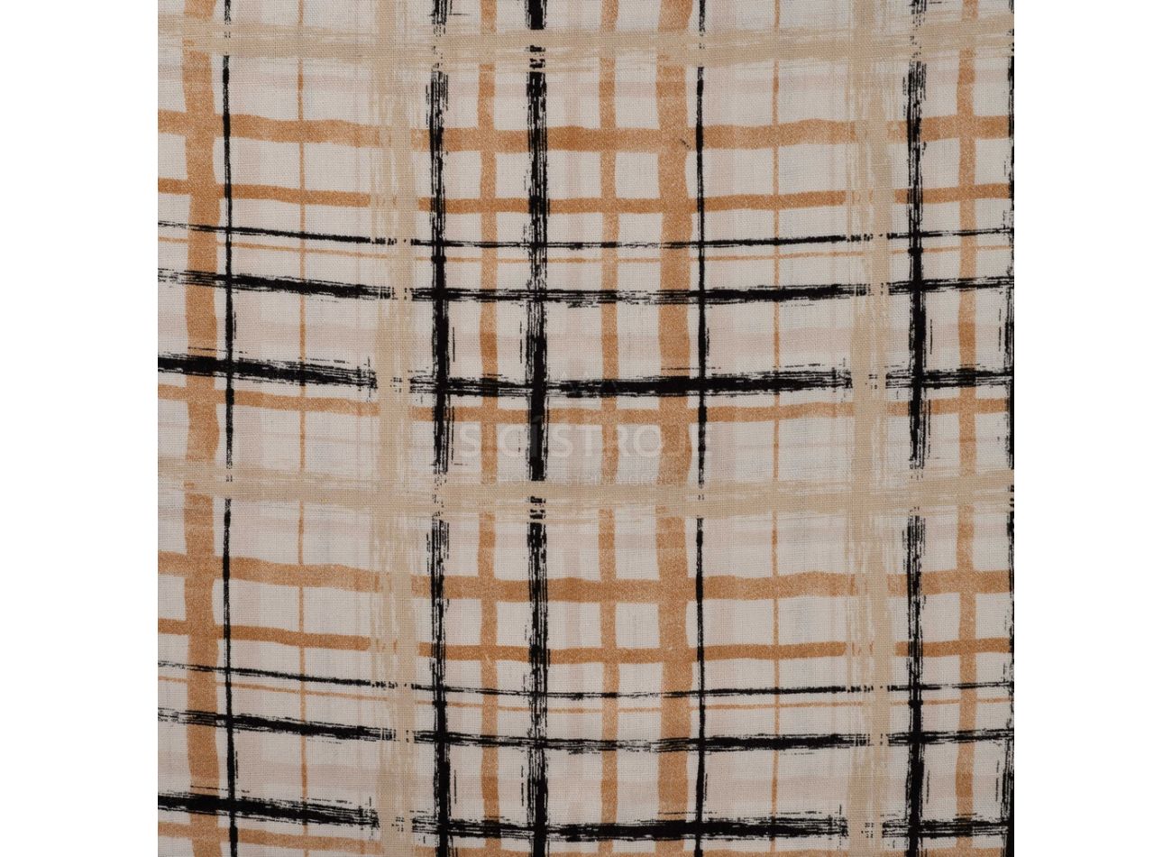 Linnen Viscose Print, 60% viskóza, 40% ľan, minimálna šírka 132 cm, gramáž 185 g/m2, vzor hand painted check, farba sand