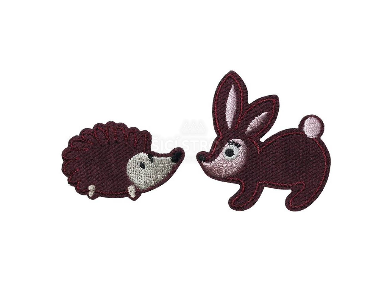 Nášivka ježko a králik, samolepiaci/nažehľovací, tmavo červená