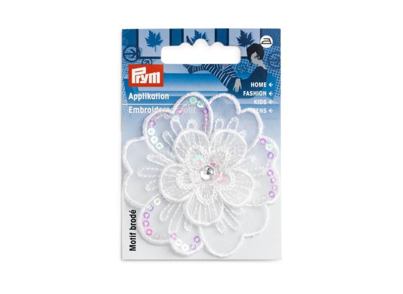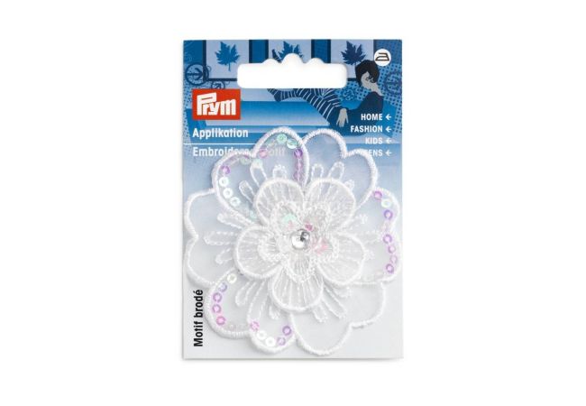 Nášivka kvetina s flitrami, slávnostné, nažehľovacie, biela