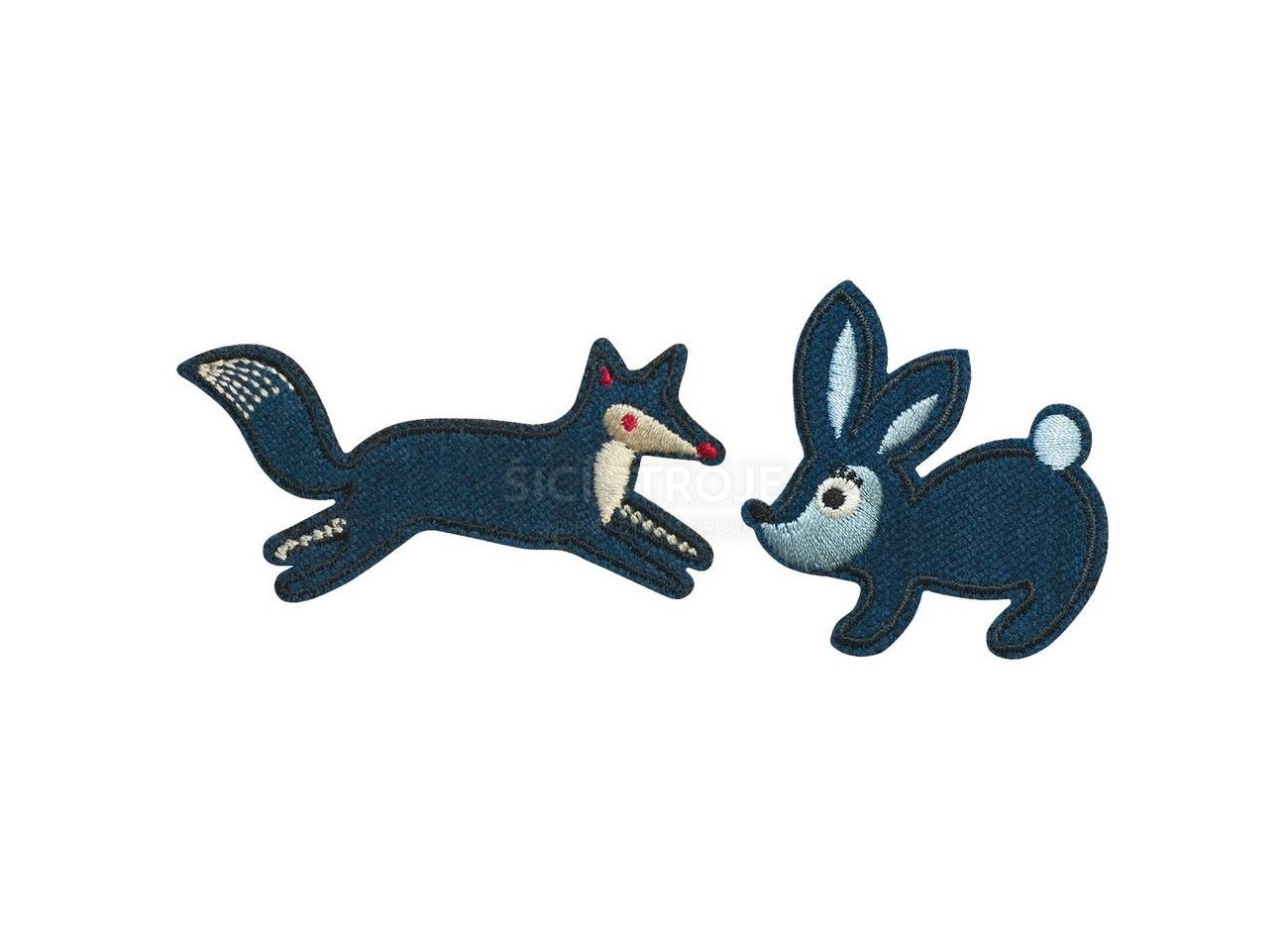 Nášivka líška a králik, samolepiaca/nažehľovacia, modrá
