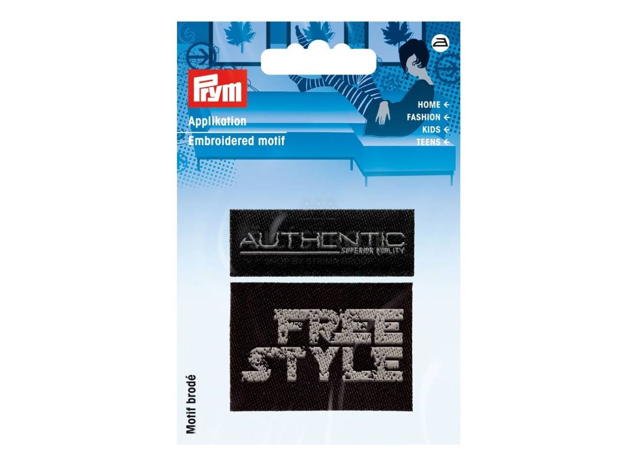 Nášivka štítok Authentic/Free Style, nažehľovacia, čierna