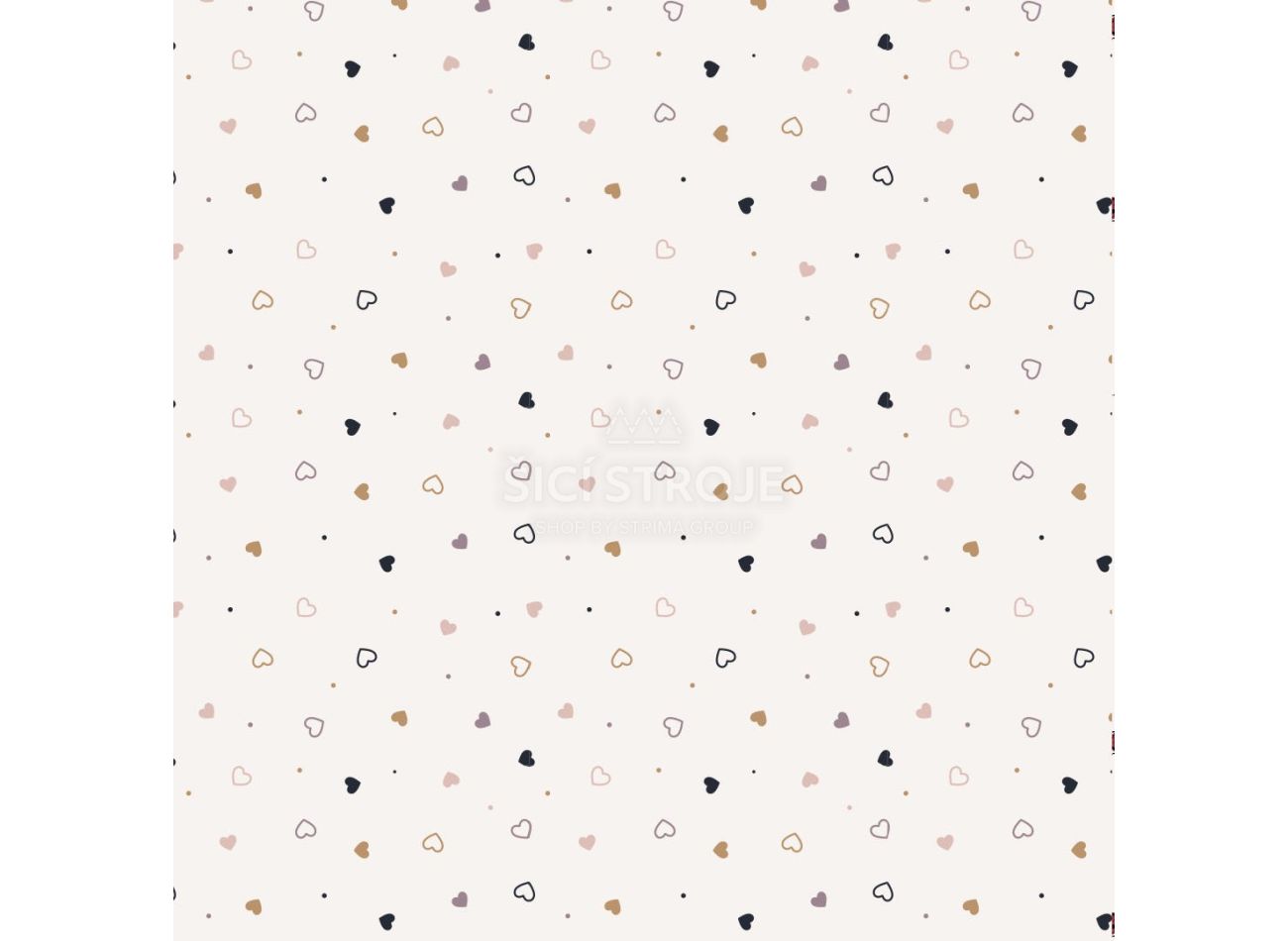 Nicky Velour Print, 80% bavlna, 20% polyester, minimálna šírka 145 cm, gramáž 230 g/m2, vzor hearts, farba off white