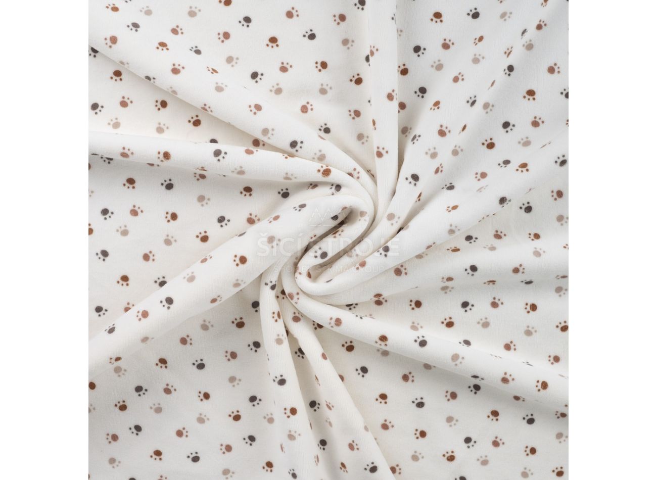 Nicky Velours Print, 80% bavlna, 20% polyester, minimálna šírka 145 cm, gramáž 230 g/m2, vzor paws, farba off white