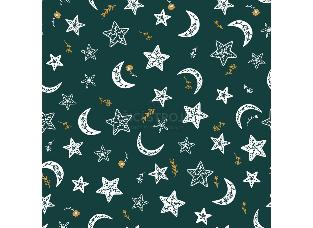 Norcic Moon And Stars, 100% bavlna, minimálna šírka 135 cm, gramáž 120 g/m2, farba army..