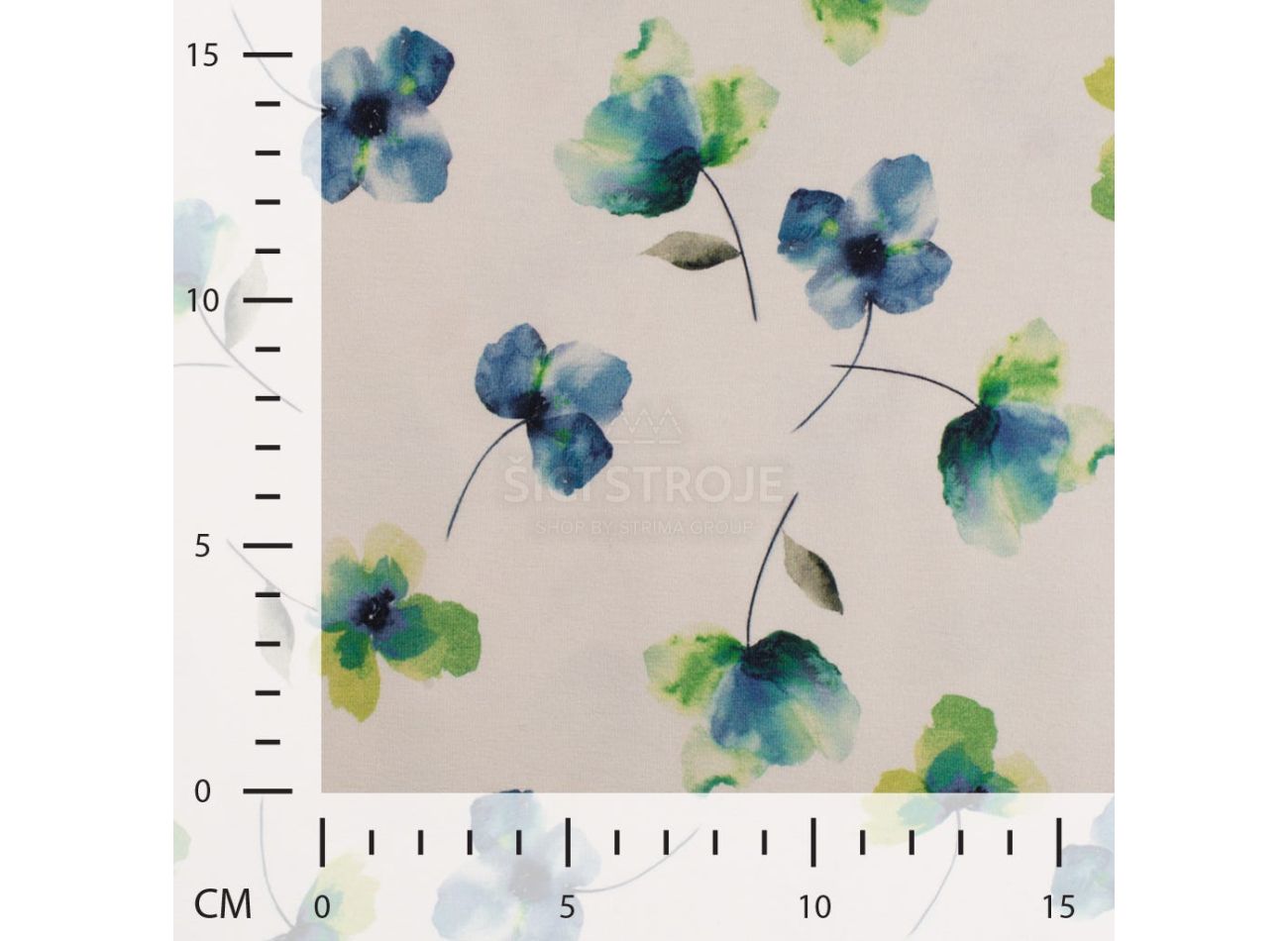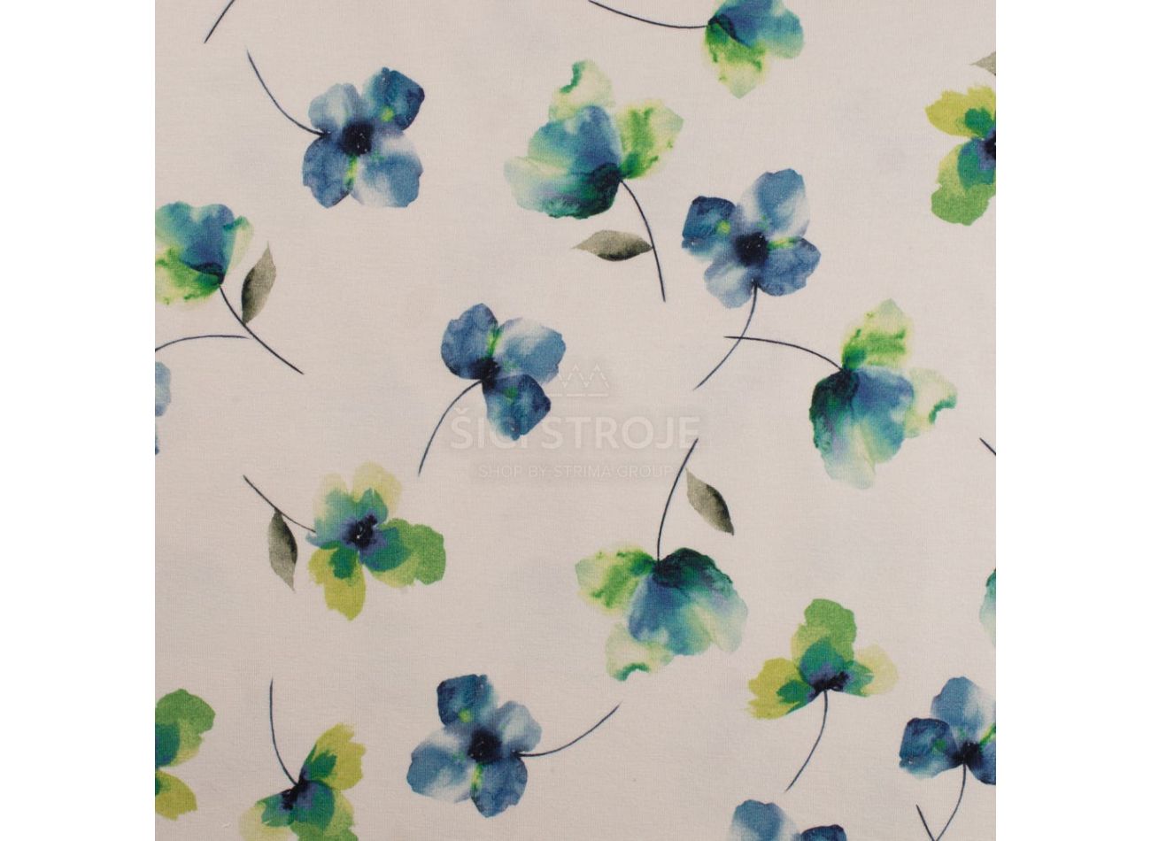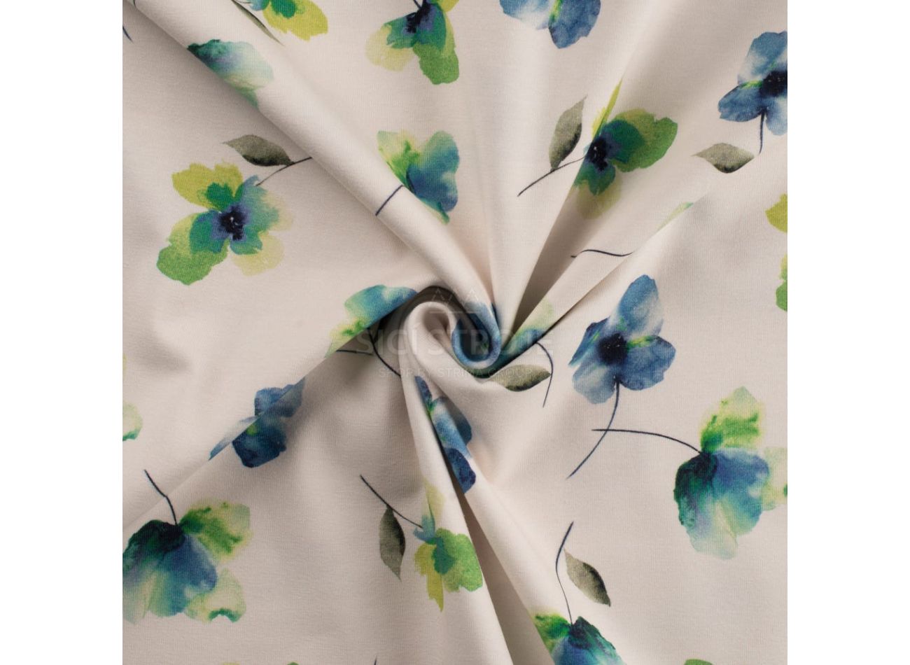 Organic Cotton/EA Jersey Digital, 95% organická bavlna, 5% elastan, minimálna šírka 145 cm, gramáž 200 g/m2, vzor flowers, farba green