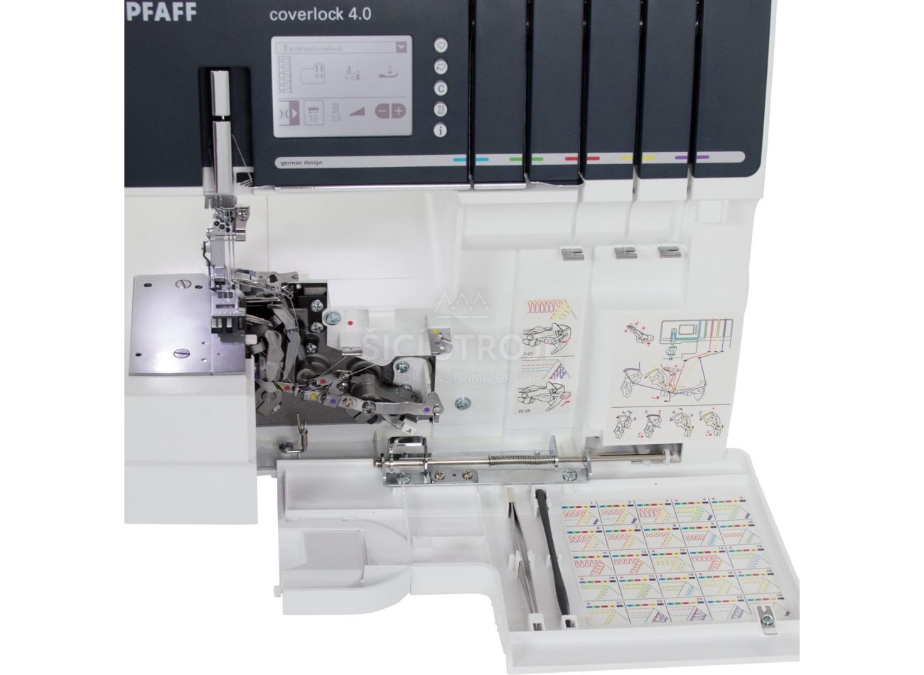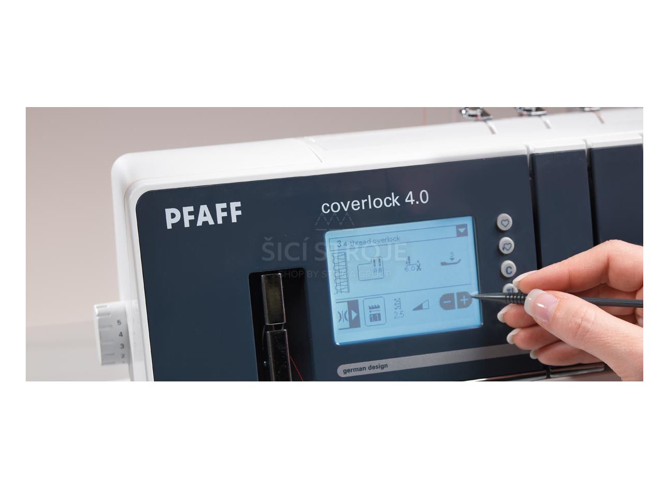Overlock-Coverlock 4.0 Pfaff je 2, 3, 4 a 5-nitný elektronický overlockový stroj německé značky šicích strojů Pfaff - stroj je jediný na našem trhu s dotykovým LCD displejem, který šije běžné overlockové i spodem krycí stehy tzv. coverlockový steh.