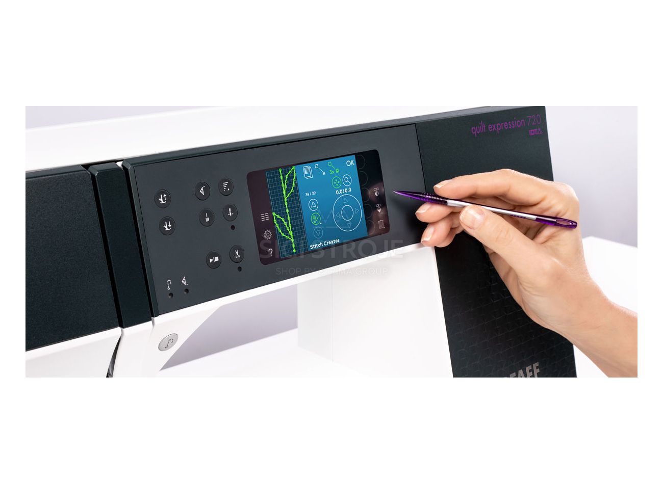 Šijací stroj Pfaff Quilt Expression 720 je nový zásadne vylepšený model obľúbeného šijacieho stroja Pfaff Expression 4.2 a Expression 5,2. Ide o špičkový elektronický šijací stroj nemeckej značky šijacích strojov Pfaff s farebným grafickým displejom, 428 typov stehov vr. 3 abecied, šitie do strán, tzv. maxi stehy do šírky až 52 mm, voľným ramenom, automatickou gombíkovou dierkou Sensormatic, najúčinnejším systémom zabudovaného horného podávania IDT a automatickým odstrihom oboch nití a automatickým napätím nite.