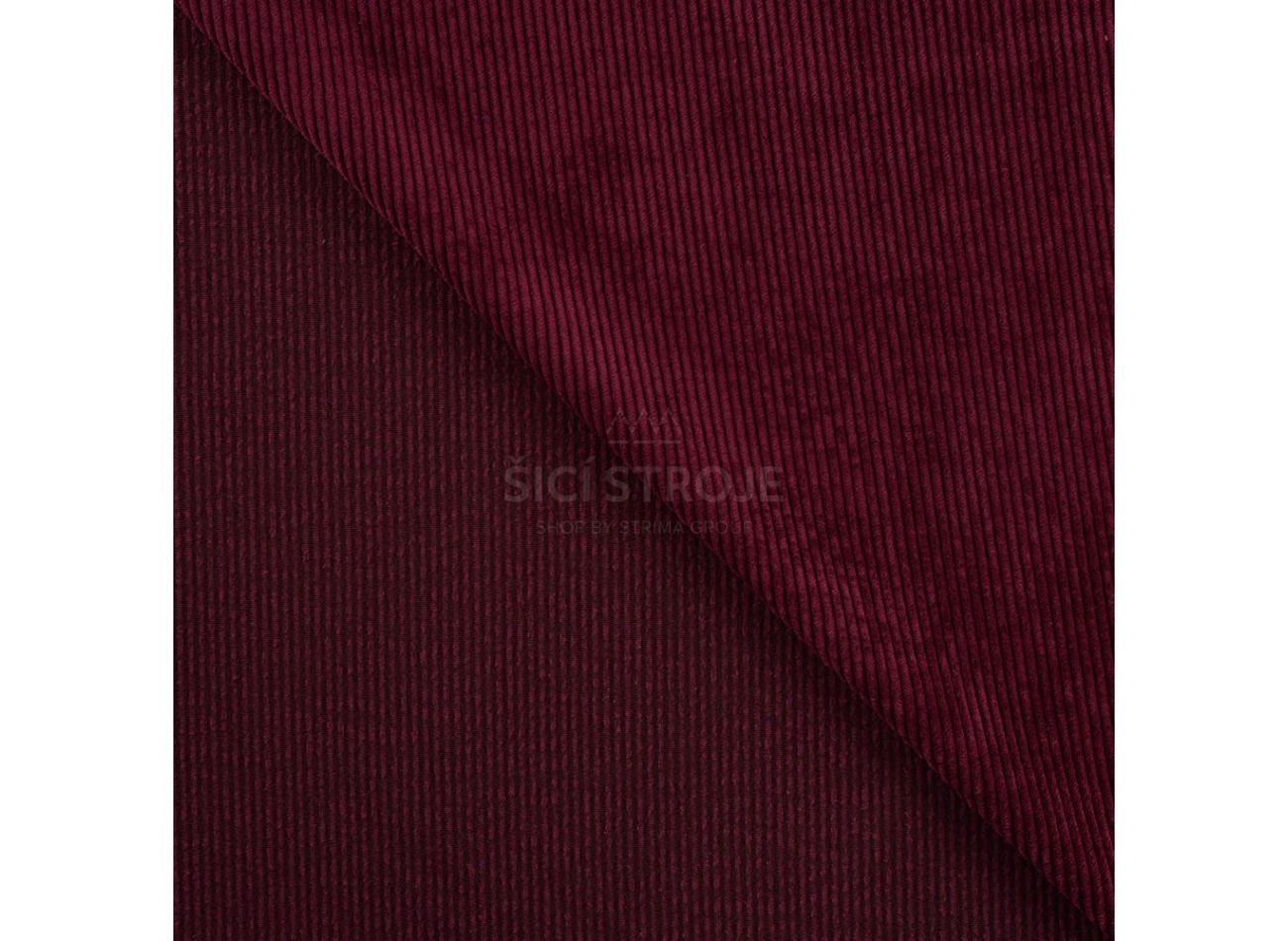 Praný menčester, 85% polyester, 12% polyamid, 3% elastan, minimálna šírka 145 cm, gramáž 330 g/m2, farba bordeaux