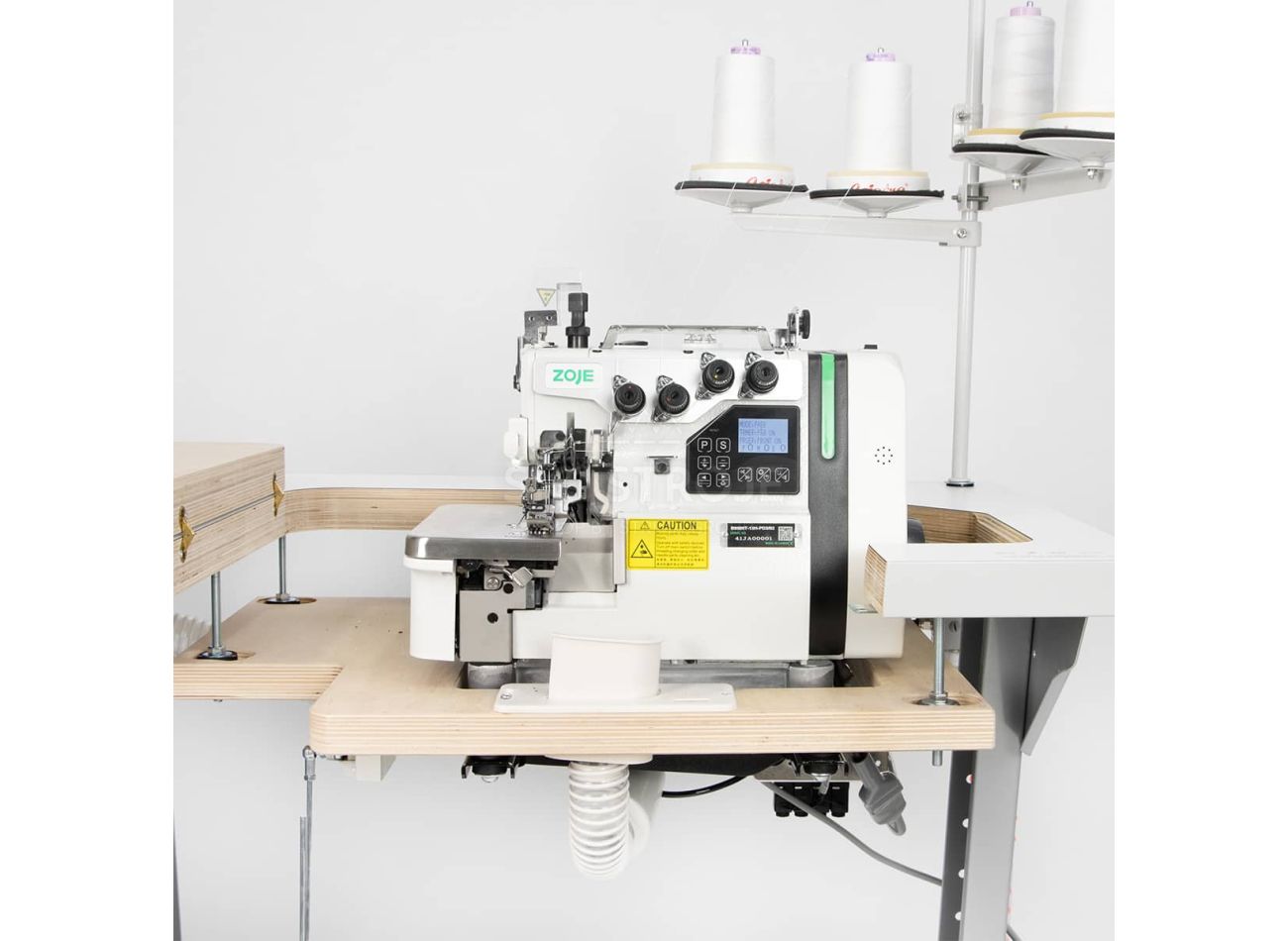 2-ihlový, 5-nitný overlock na šitie stredných a ťažkých materiálov s horným podávaním a automatickými funkciami - kompletný.