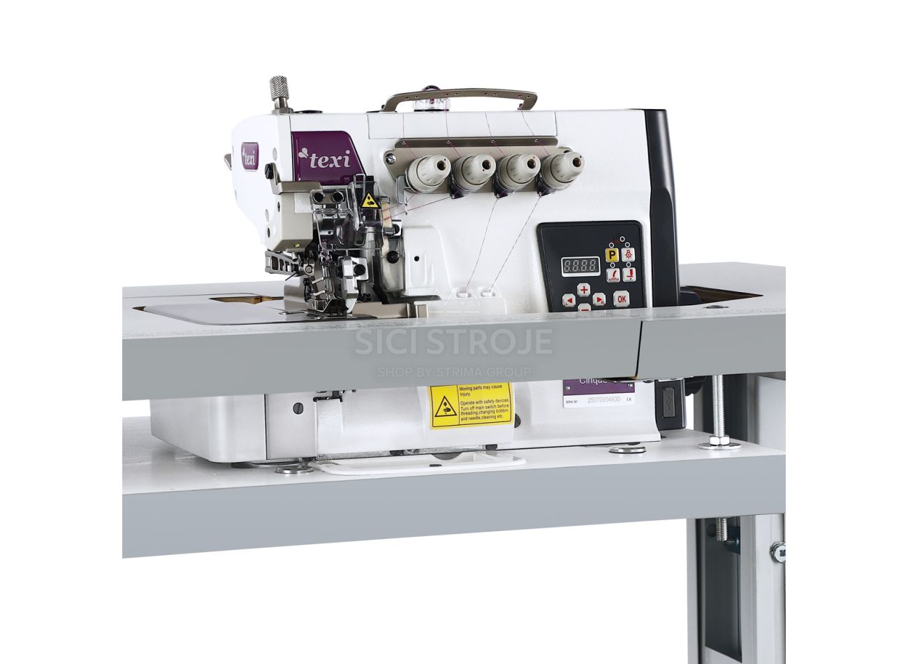 TEXI CINQUE 1F je 5nitný overlock se dvěma jehlami určený pro šití lehkých a středně těžkých materiálů. Díky vestavěnému AC servomotoru pracuje stroj tiše a bez vibrací. Uzavřený systém mazání zajišťuje, že nedochází ke kontaminaci olejem, a LED lampa efektivně osvětluje šicí prostor.