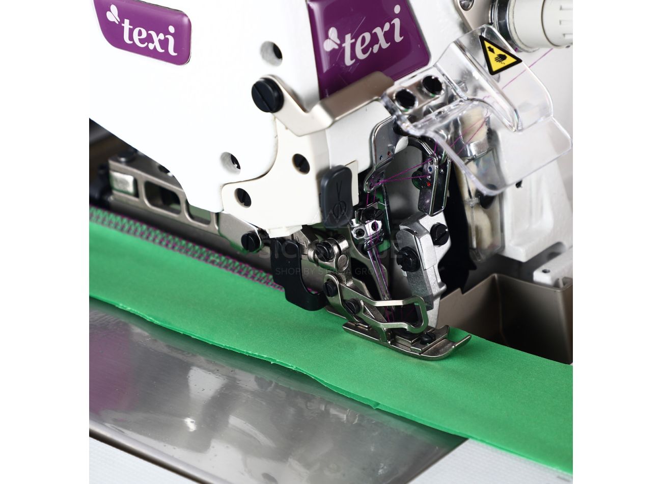 TEXI QUATTRO 3F je 4nitný 2jehlový overlock s diferenciálním spodním podáváním, určený pro šití lehkých a středních materiálů. Stroj dosahuje vyšší rychlosti až 7 000 stehů za minutu. Vybaven integrovaným AC servomotorem pracuje tiše a stabilně. Uzavřený systém mazání zajišťuje čistotu a LED světlo poskytuje dobré osvětlení pracovního prostoru.