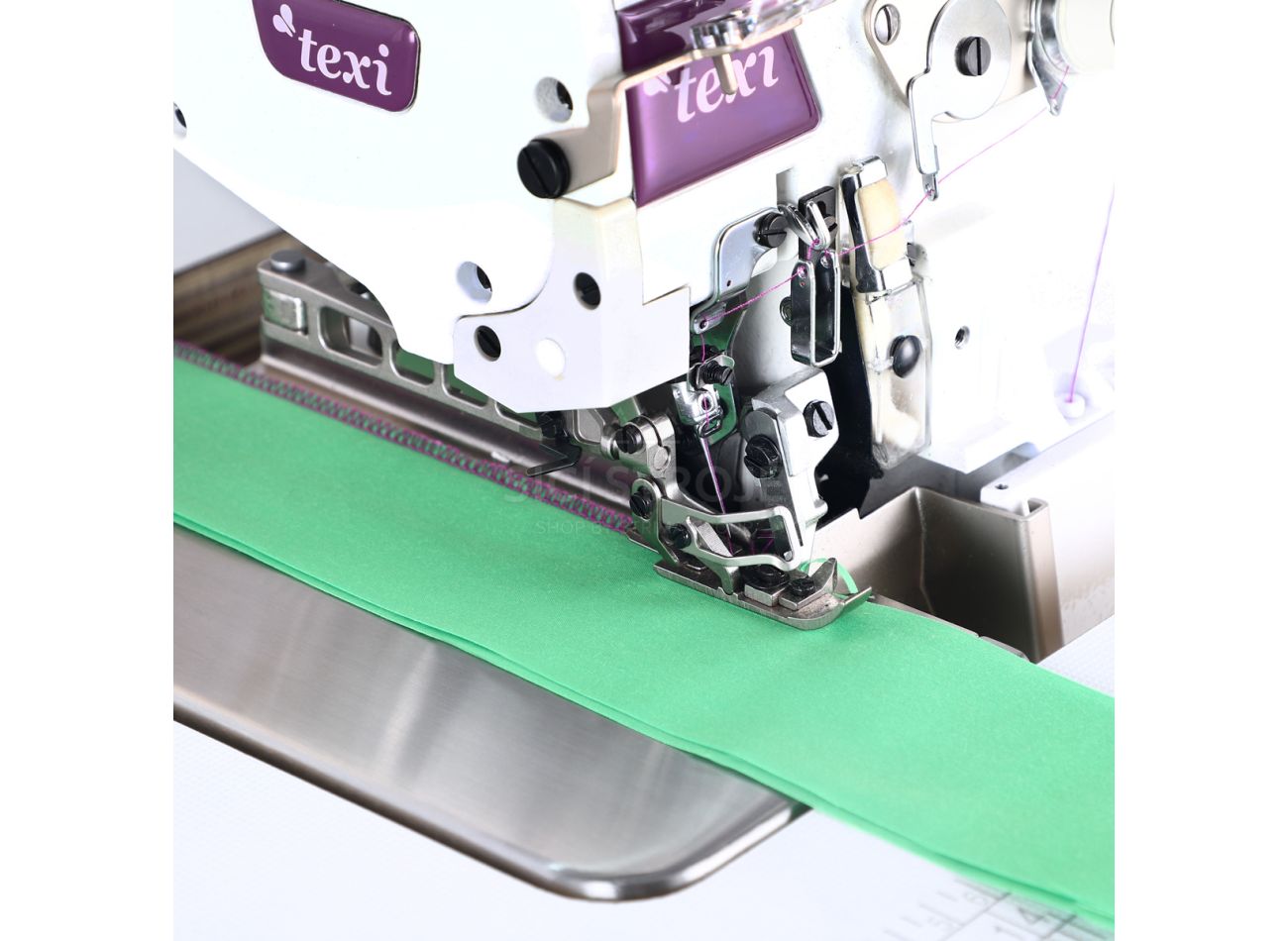 TEXI TRE 1F je průmyslový 3nitný overlock s diferenciálním spodním podáváním, určený pro šití lehkých a středních materiálů. Integrovaný AC servomotor zajišťuje tichý provoz a nízké vibrace. Uzavřený systém mazání zajišťuje čistou práci bez oleje. LED světlo přesně osvětluje pracovní prostor.