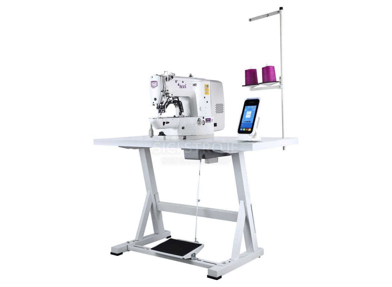 TEXI CATENACCIO 43F je priemyselný elektronický zapošívací stroj so šijacou plochou 40x30 mm, určený pre ľahké a stredne ťažké materiály. Je vybavený CNC riadením, integrovaným AC servomotorom a uzavretým mazacím systémom a zaručuje presnú a čistú prevádzku. LED lampa efektívne osvetľuje pracovný priestor.