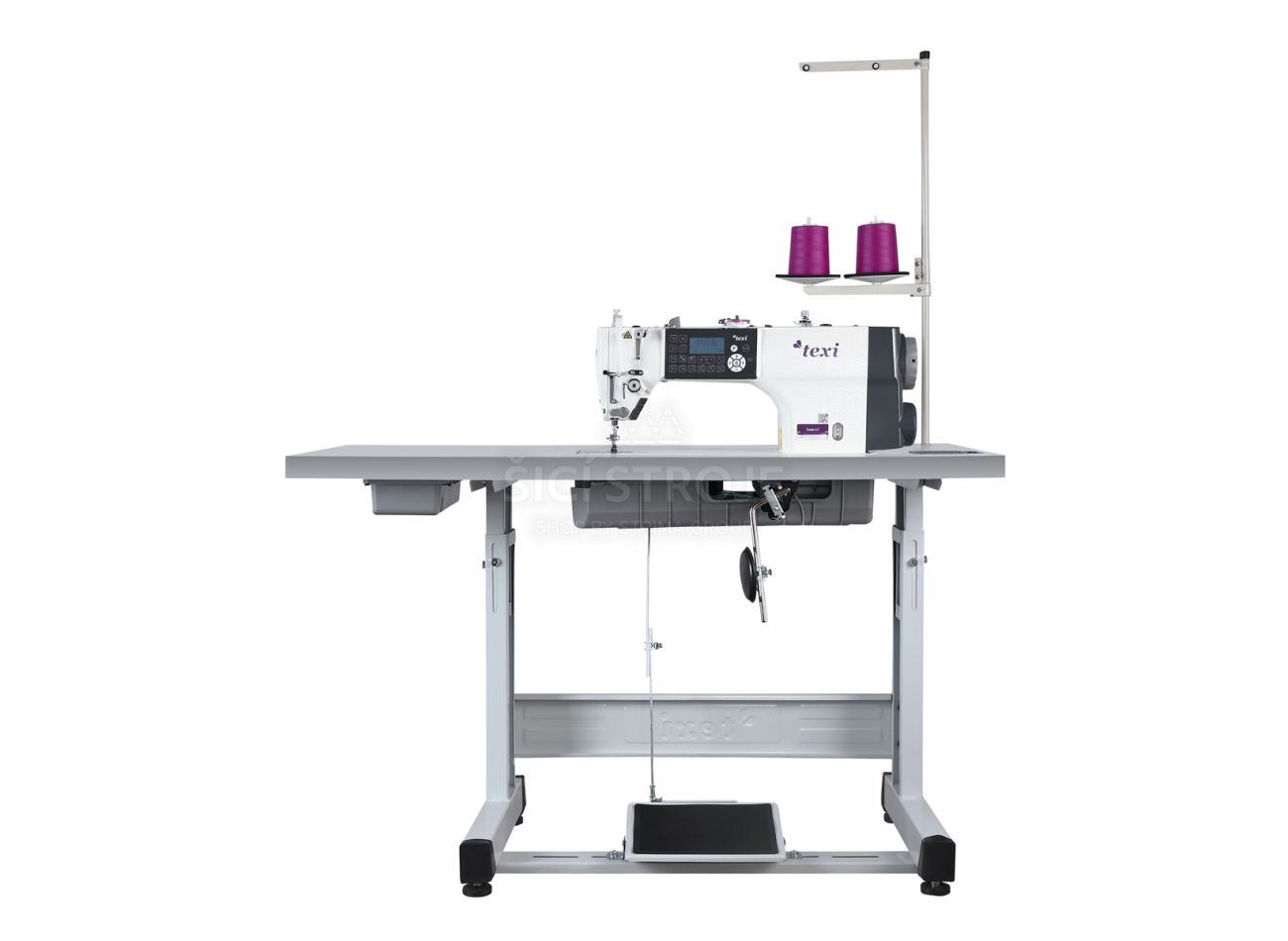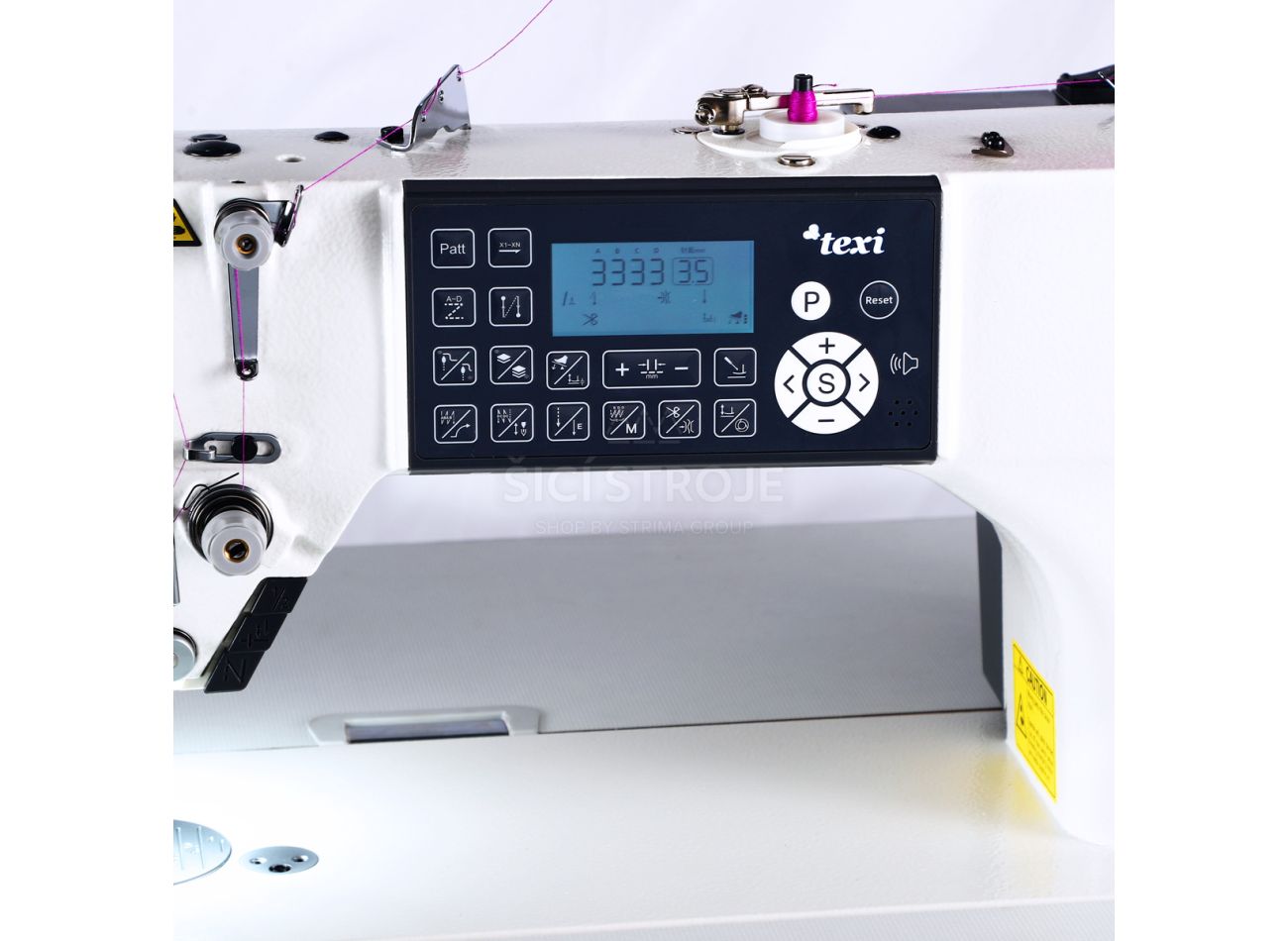 TEXI TRONIC 6F je pokročilý průmyslový šicí stroj s vázaným stehem pro lehké a středně těžké látky. Je vybaven uzavřeným olejovým okruhem, který eliminuje riziko kontaminace a zajišťuje čistý provoz. Stroj má zvětšenou pracovní plochu (305 mm od ramene k jehelní tyči) a funkci dekorativního stehu. Integrovaný servomotor AC zajišťuje tichý provoz a nízké vibrace.