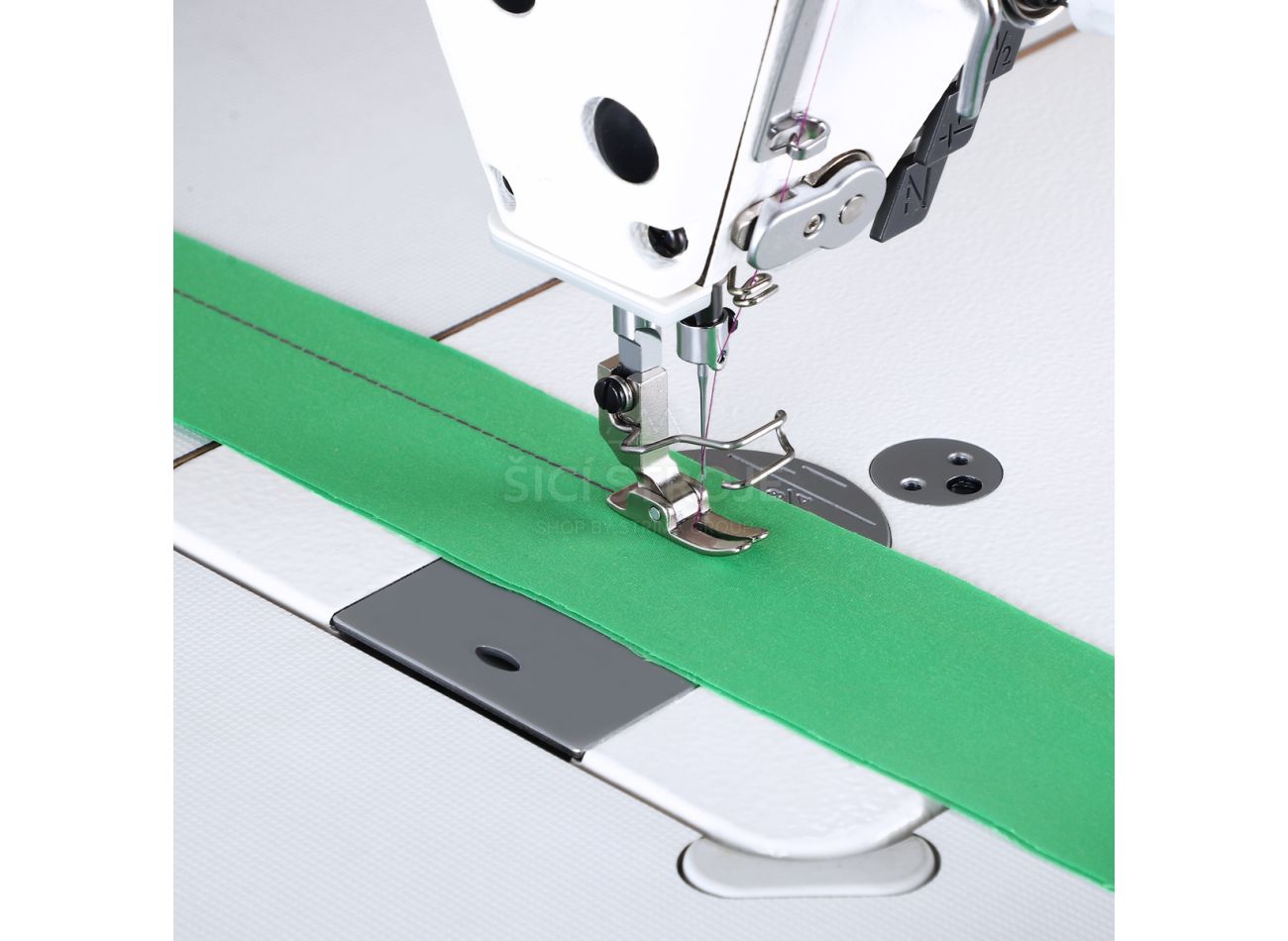 Stroj dosahuje rychlosti až 5000 stehů/min, délky stehu až 5 mm a výšky zdvihu přítlačné patky 5,5-13 mm. Je vybaven chapačem o průměru 21 mm (standardně) a spodním podáváním. LED lampa přesně osvětluje pracovní prostor, což usnadňuje vedení látky.