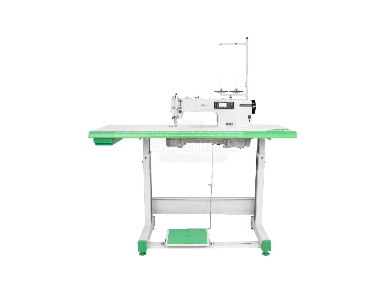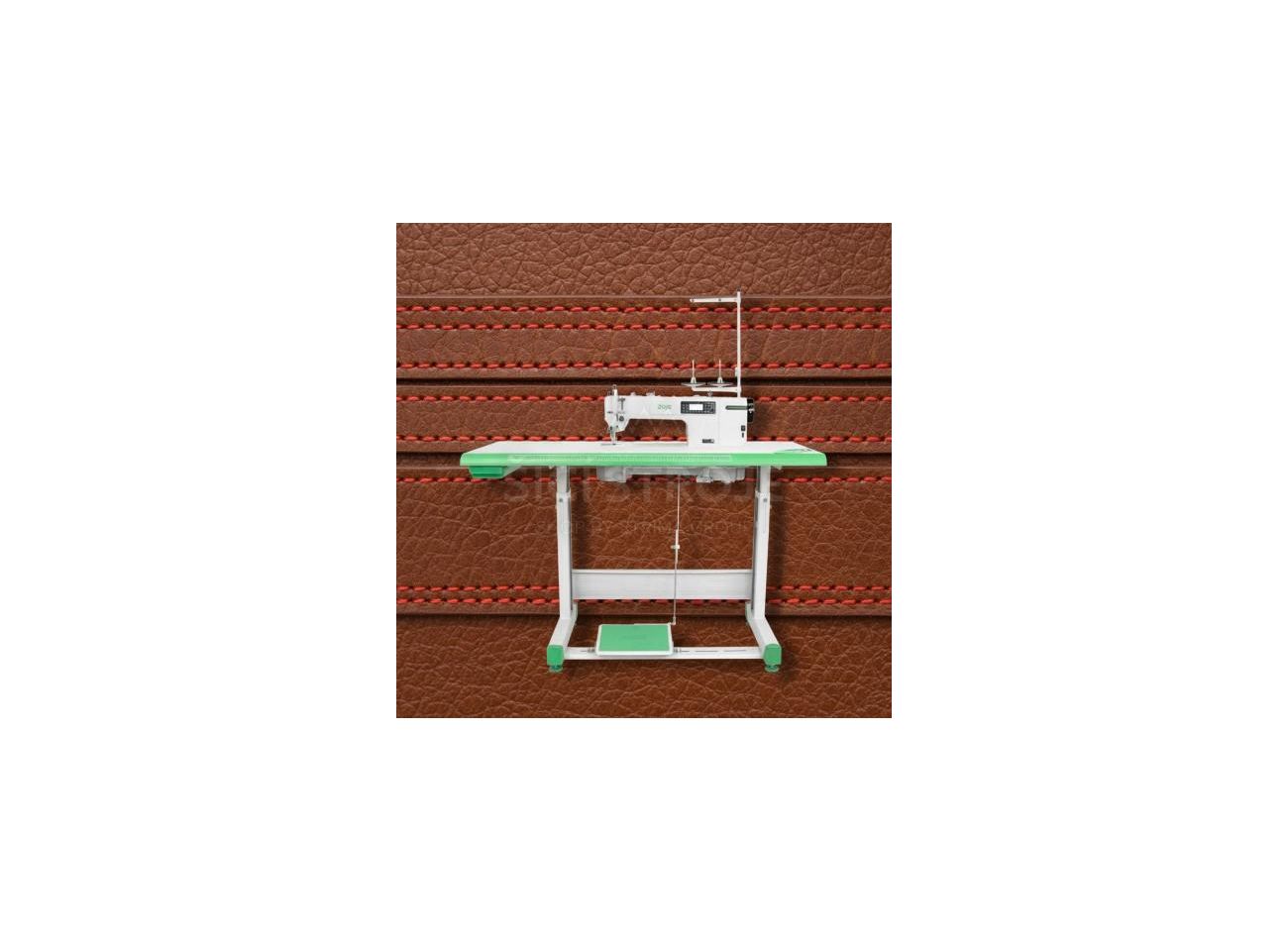 Automatický šijací stroj na čalúníctvo a šitie kože so vstavaným krokovým motorom. Predĺžená verzia s LCD displejom. Určené na ťažké materiály. Šijací stroj má podvojné podávanie (spodné a pätkové podávanie). Kompletný šijací stroj.