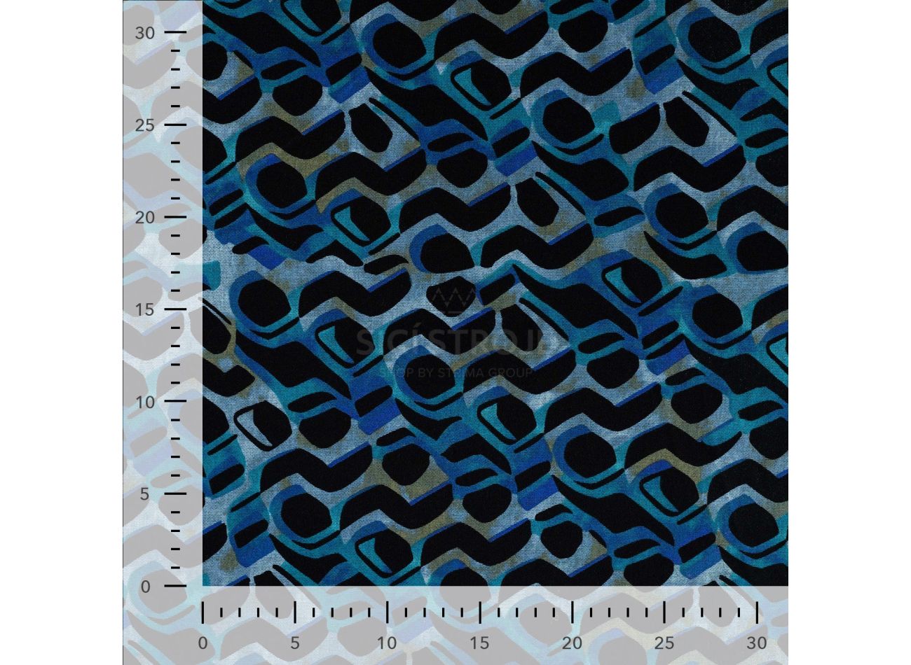 Punta Soft Print, 55% polyester, 45% viskóza, minimálna šírka 145 cm, gramáž 240 g/m2, vzor graphic, farba petrol