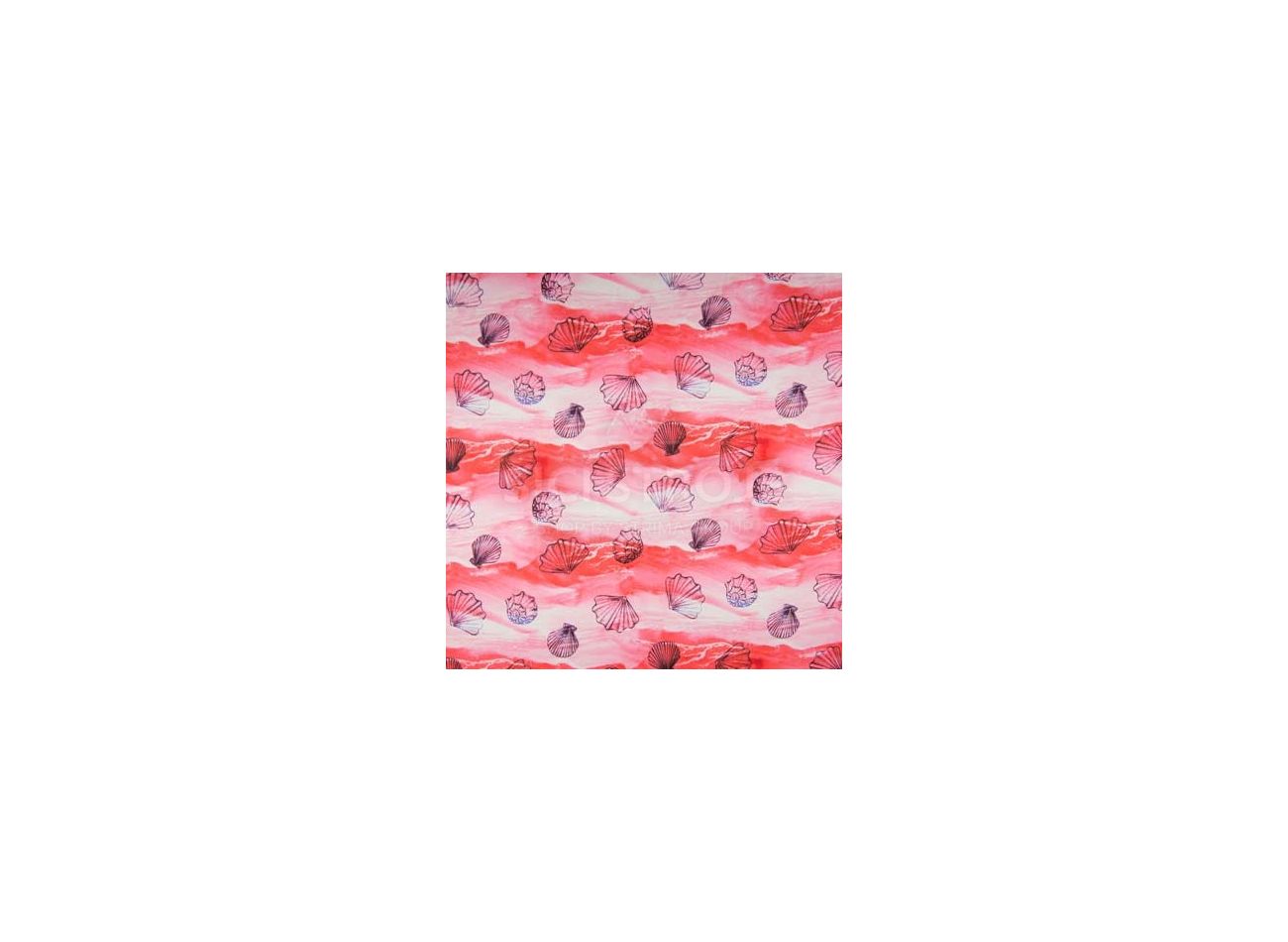 Satin Print, 100% polyester, minimálna šírka 145 cm, gramáž 80 g/m2, vzor shells, farba coral
