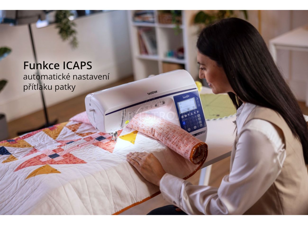 Šitie vysokých aj problematických materiálov vám uľahčí silný vpich ihly, patentované obdĺžnikové podávanie SFDS (Square Feed Drive System) a funkcia ICAPS - automatické riadenie prítlaku pätky podľa výšky látky. Prítlak pätky je regulovateľný aj manuálne v nastavení stroja, je len na vás, ktorý variant zvolíte. Automatický ICAPS je fantastický v tom, že „vidí“ sklad na spojenie švov a na tento malý kúsok prítlak uberie. Nemusíte tak pri šití premýšľať a všetko ide hladko.