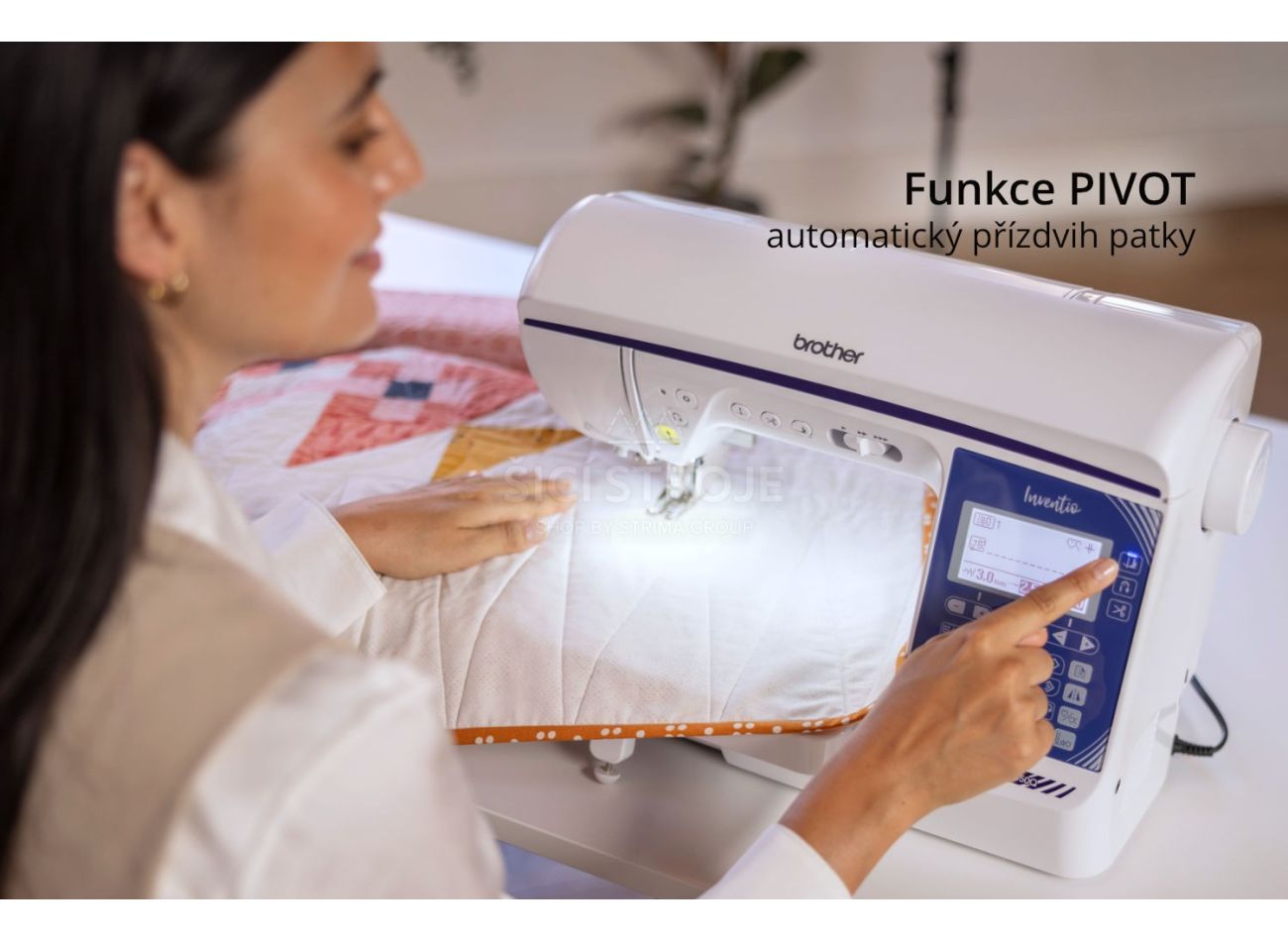 Brother Inventio NV1850Q vás zaujme od prvého stehu! Funkcia automatického zapošitia a automatického odstrihu nite je tu povýšená na ďalšiu úroveň funkcií PIVOT - automatický prízdvih pätky. Stroj na začiatku šitia zapošije, pri každom zastavení zapichne ihlu do látky a jemne nadvihne pätku, takže vy môžete krásne otáčať na ihle, pri zošliapnutí pedála zase pätku pritlačí a ide ďalej. Na konci šitia stačí stlačiť tlačidlo zapošitia a stroj zapošije, pretiahne obe nite do rubu, odstrihne ich a zdvihne pätku. Vy len vezmete materiál a idete. Všetky tieto funkcie samozrejme idú zapnúť a vypnúť. Veľmi vám pritom šitie urýchli a spríjemní!