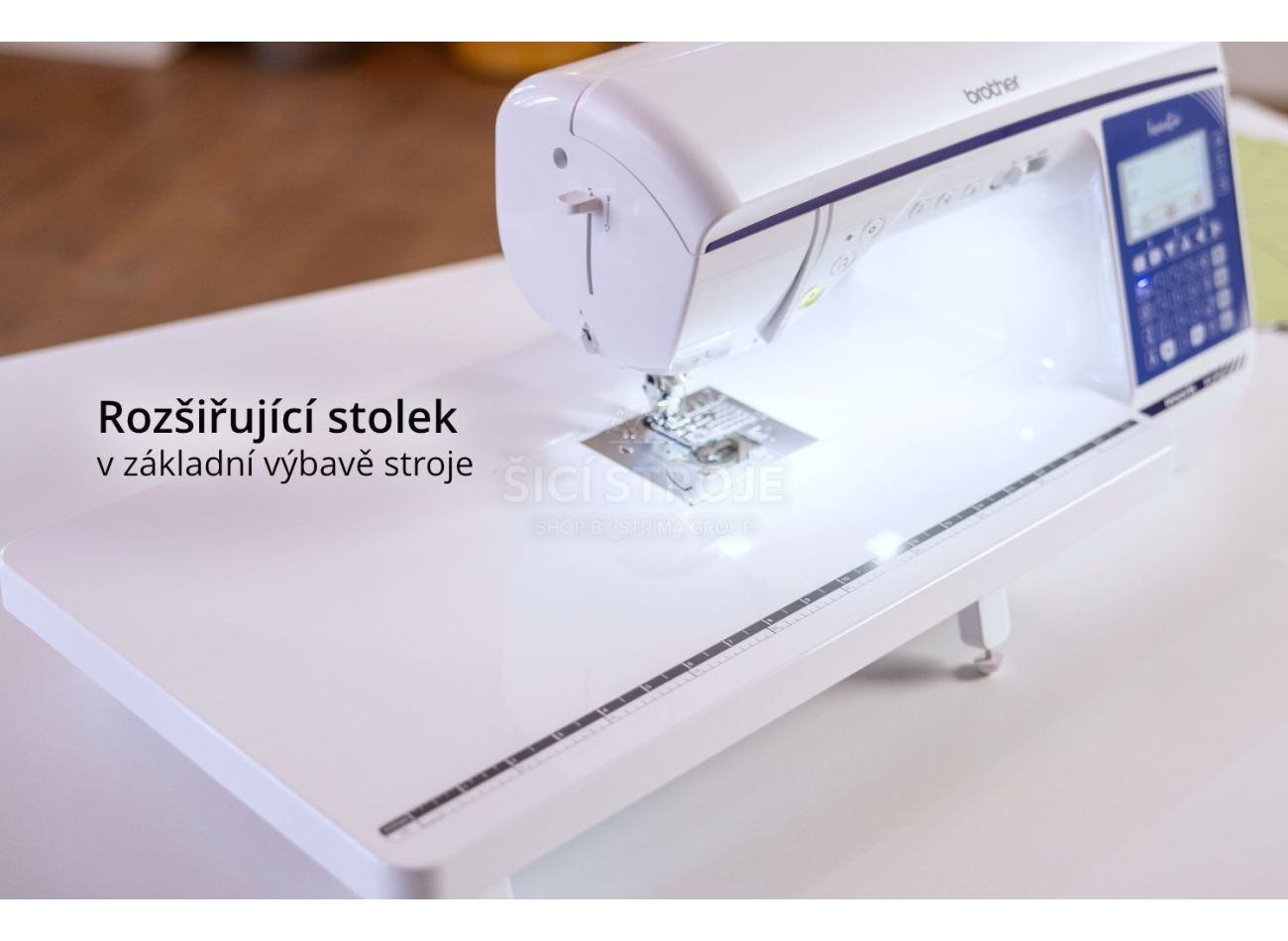 Stranové podávanie látky - umožňuje šitie extra širokých dekoratívnych stehov až 40 mm