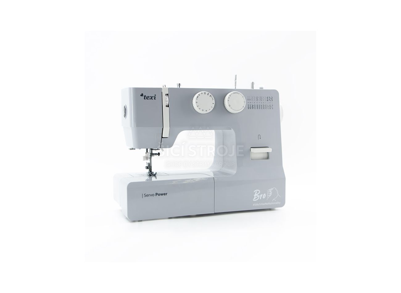 Texi Bro je revolučný domáci šijací stroj s odolným AC servomotorom - predtým používaný iba v priemyselných strojoch. Servomotor je viac efektívny a má väčší výkon 100W, čo znamená neporovnateľnú silu a presnosť, zatiaľ čo viac ušetríte na el. energiu. Zaručuje hladké a stabilné šitie na švoch, záhyboch a pri spájaní viacerých vrstiev látok. Umožňuje tiež plynulú zmenu rýchlosti šitia.