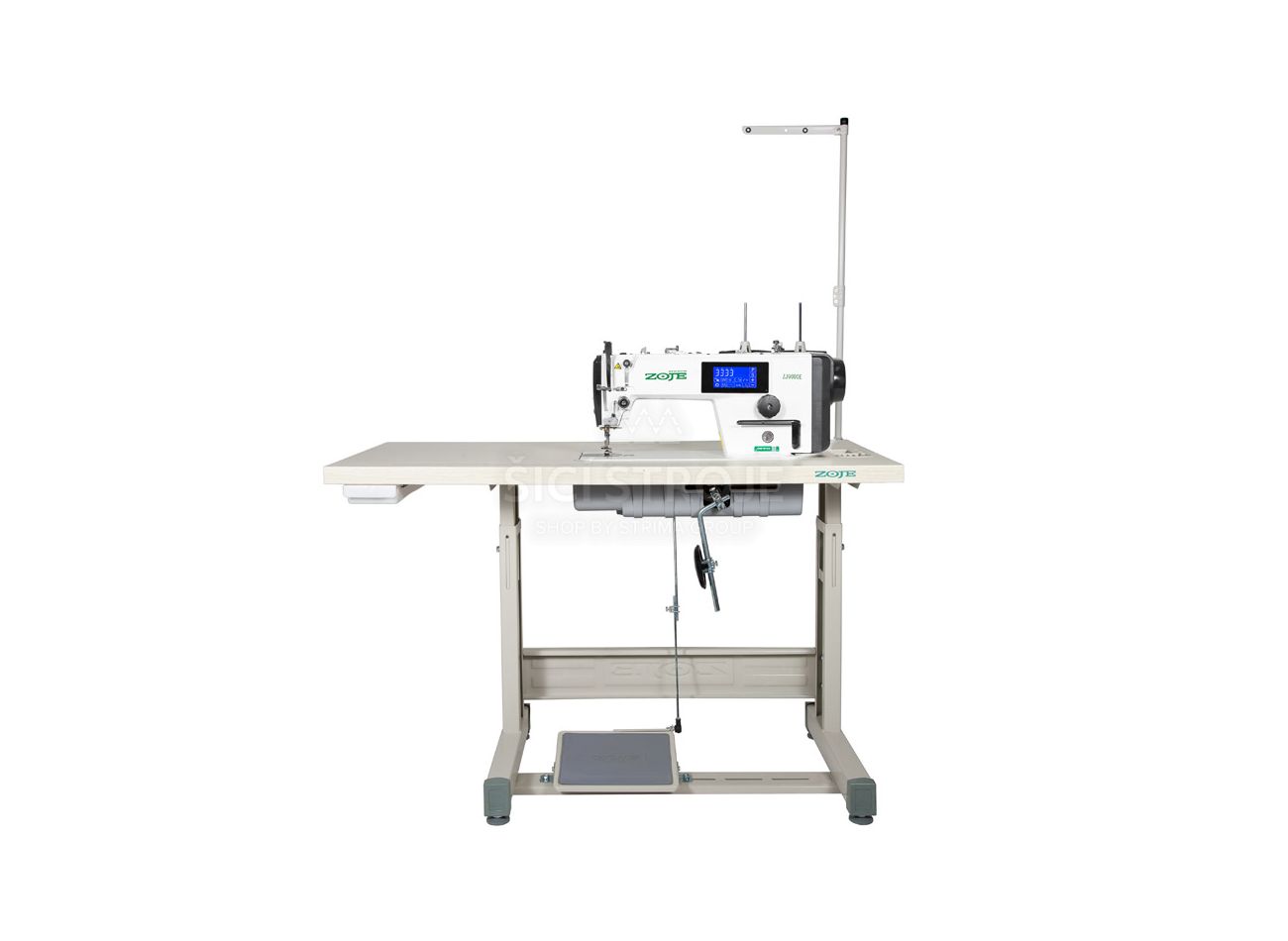 Zmontovaný kompletný priemyselný šijací stroj s automatickým odstrihom vrátane originálneho stola Zoje so zabudovaným servomotorom a panelom v hlave stroja. Novinka - moderný typ mazania zabraňujúci poškodeniu materiálu - suchá ihla.