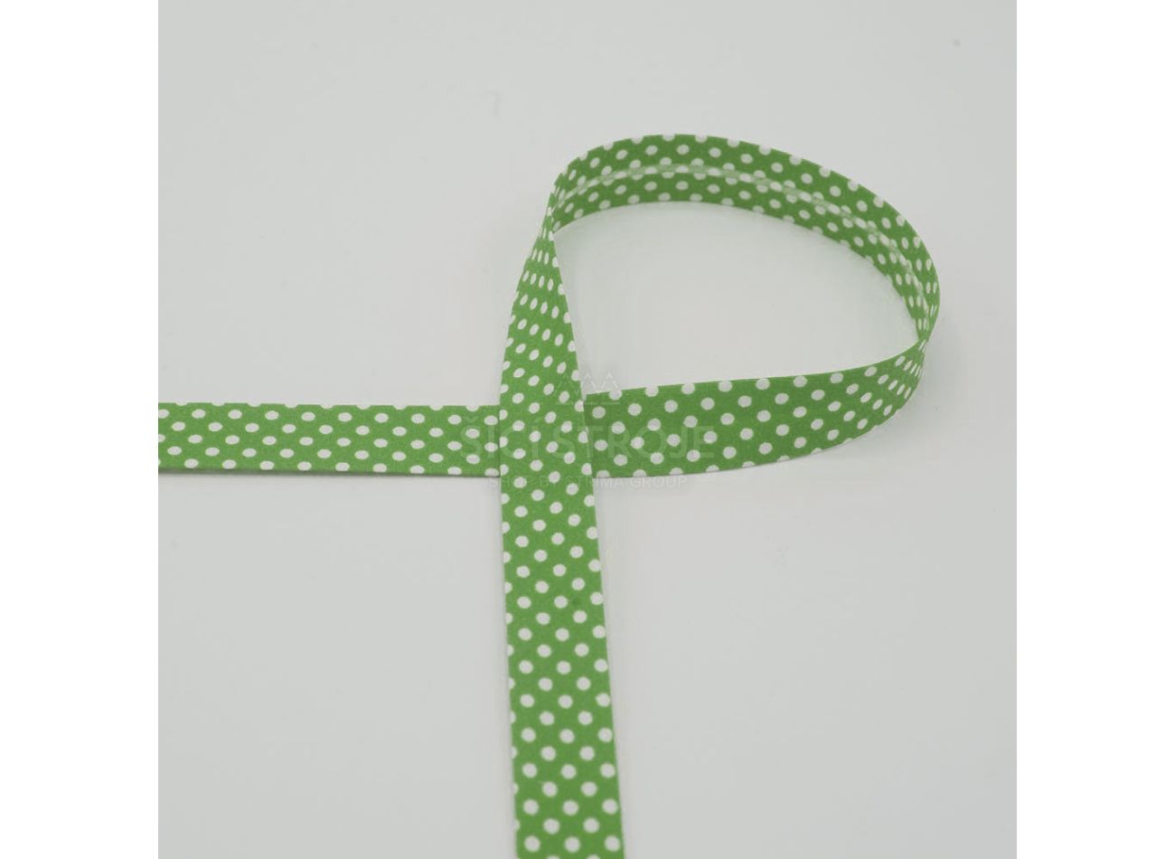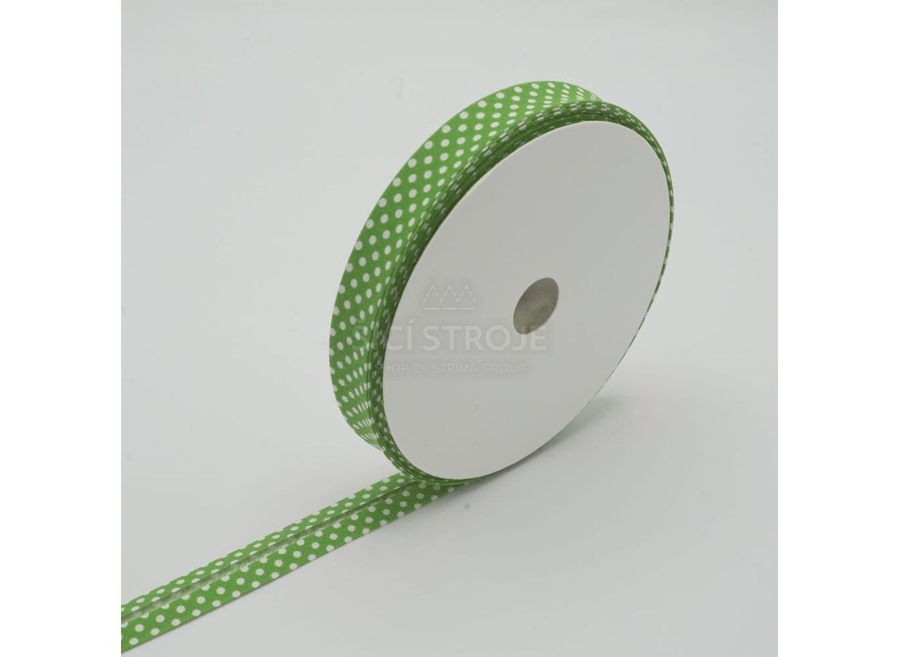 Šikmý prúžok s bodkami, 70% polyester, 30% bavlna, šírka 18 mm, farba limetková