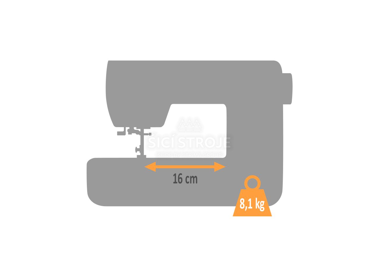 | Vzdialenosť medzi ihlou a frémou (cm) | 15 |