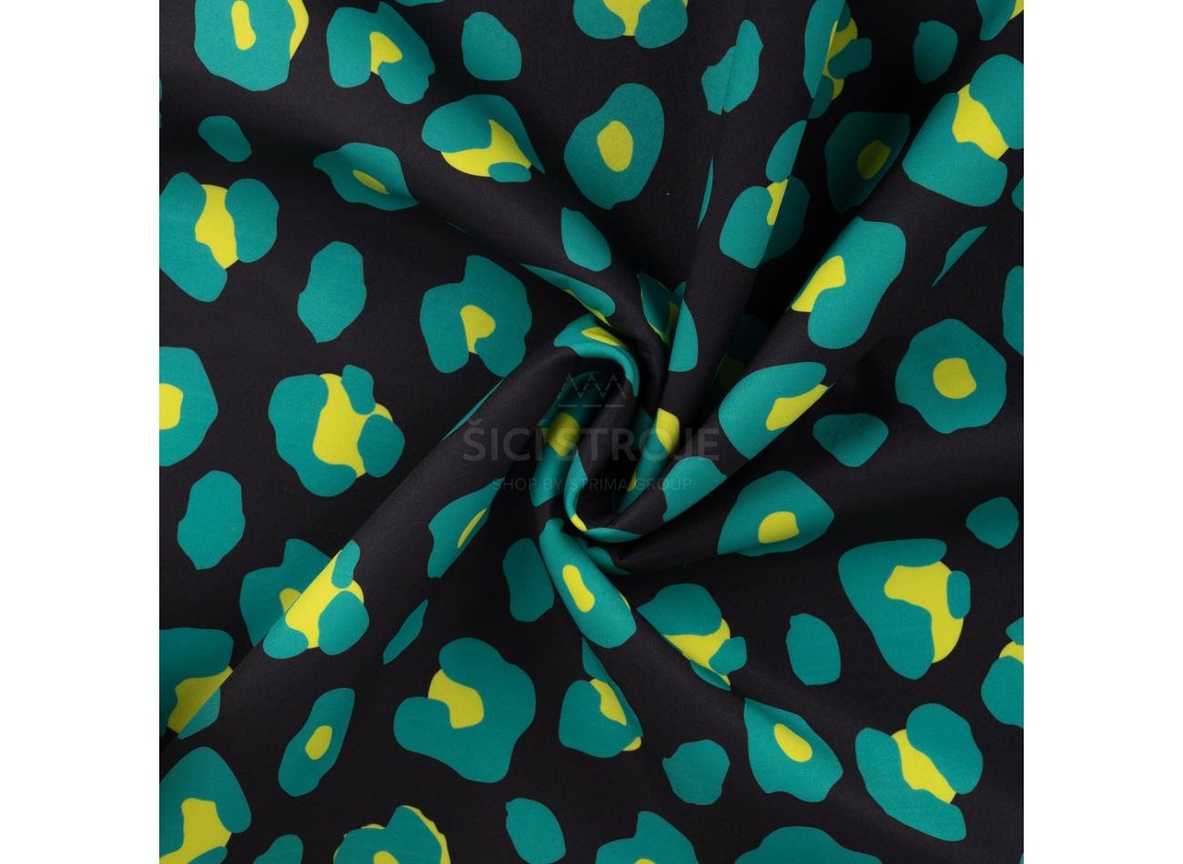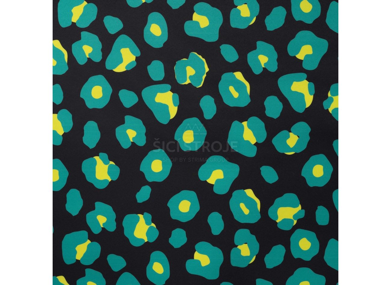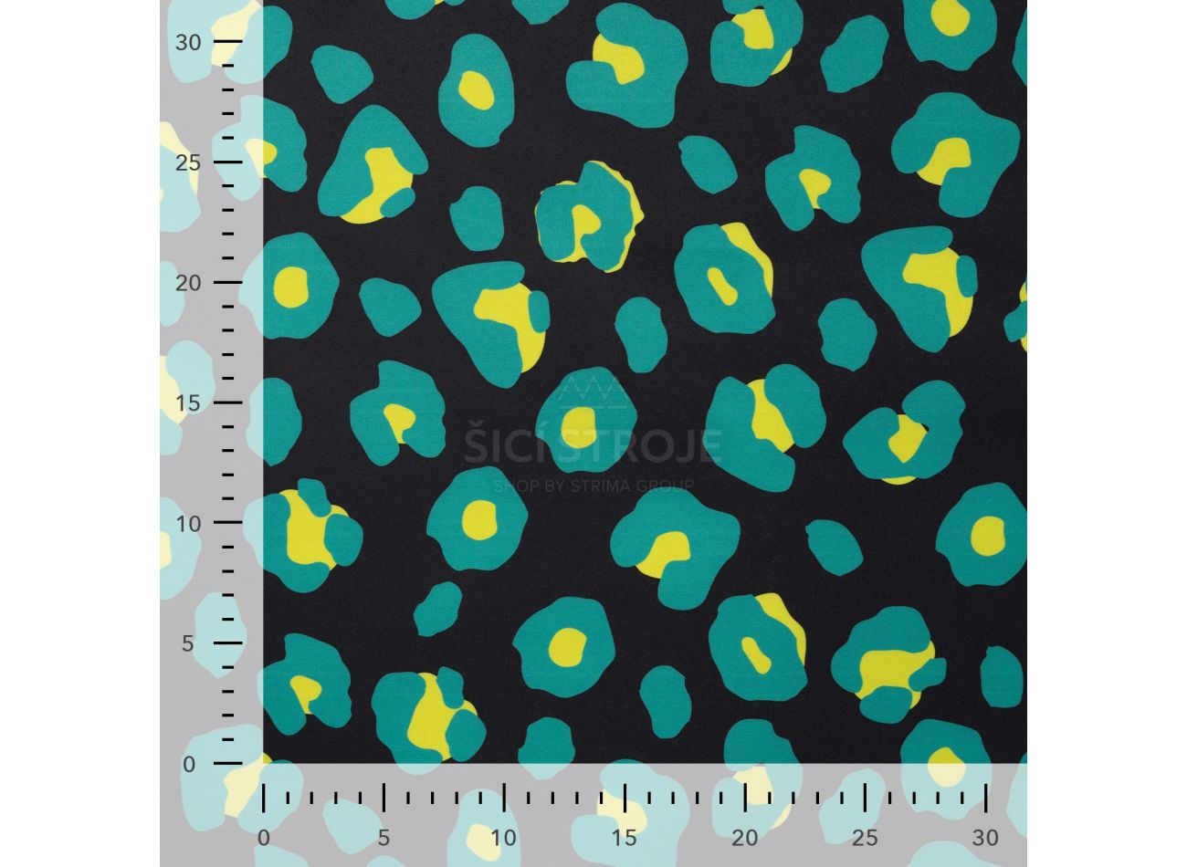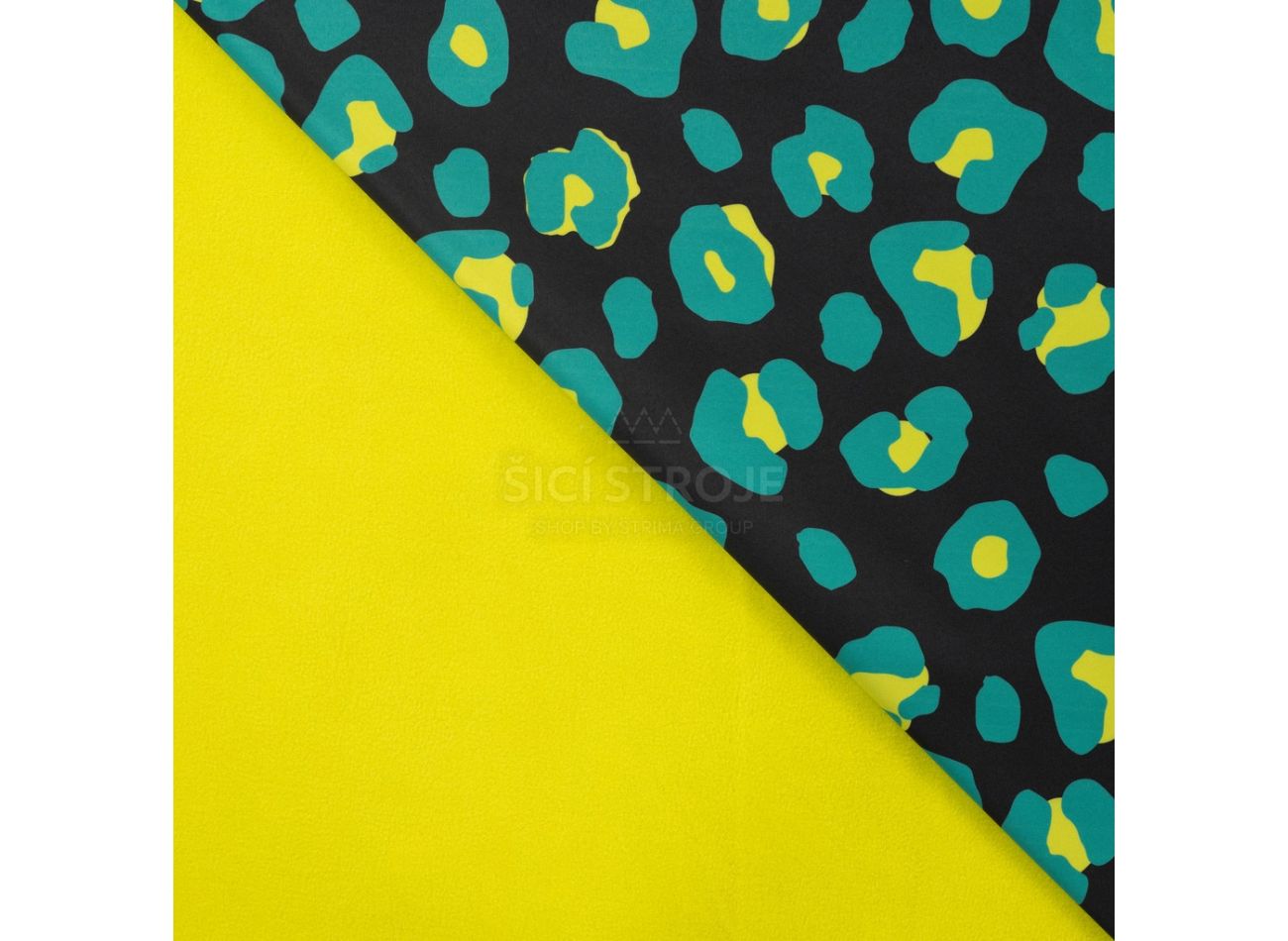 Soft Shell Digital, 99% polyester, 1% elastan, minimálna šírka 145 cm, gramáž 310 g/m2, vzor coloured leopards, farba lime