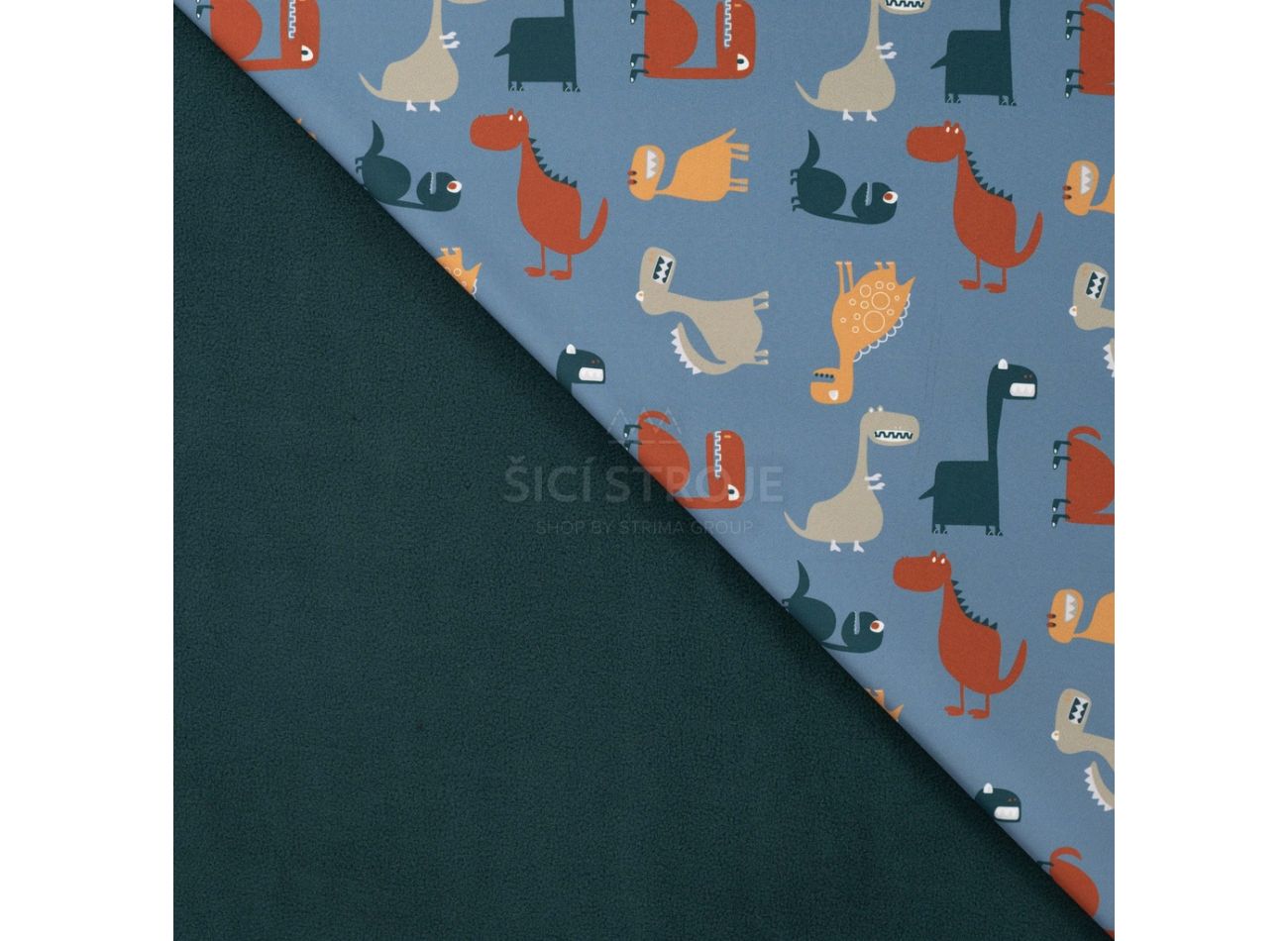 Soft Shell Digital, 99% polyester, 1% elastan, minimálna šírka 145 cm, gramáž 310 g/m2, vzor dinos, farba bottle