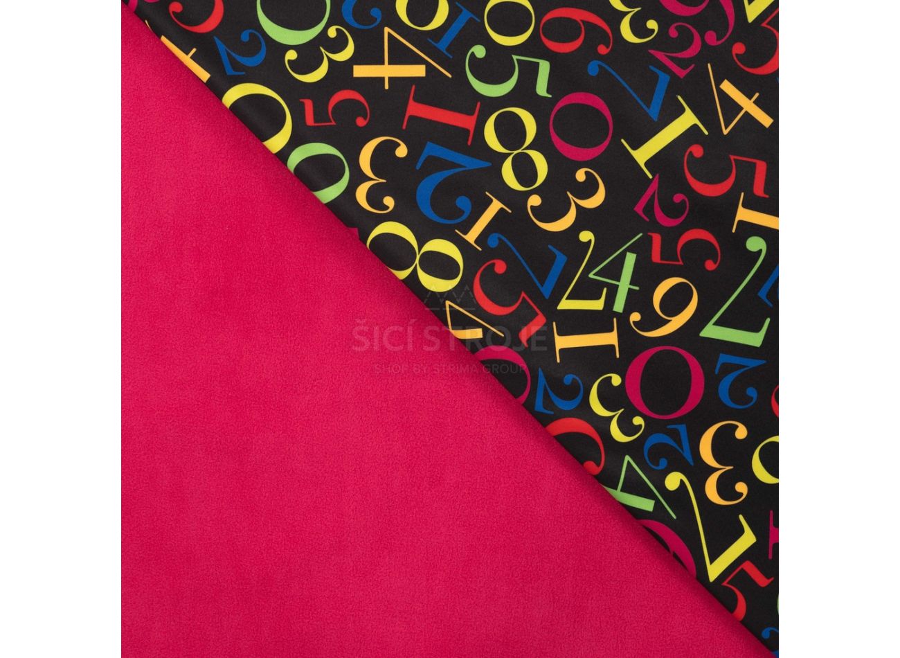Soft Shell Digital, 99% polyester, 1% elastan, minimálna šírka 145 cm, gramáž 310 g/m2, vzor numbers, farba fuchsia