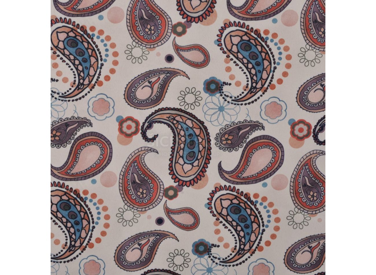 Soft Shell Digital Print, 99% polyester, 1% elastan, minimálna šírka 145 cm, gramáž 250 g/m2, vzor paisley, farba off white
