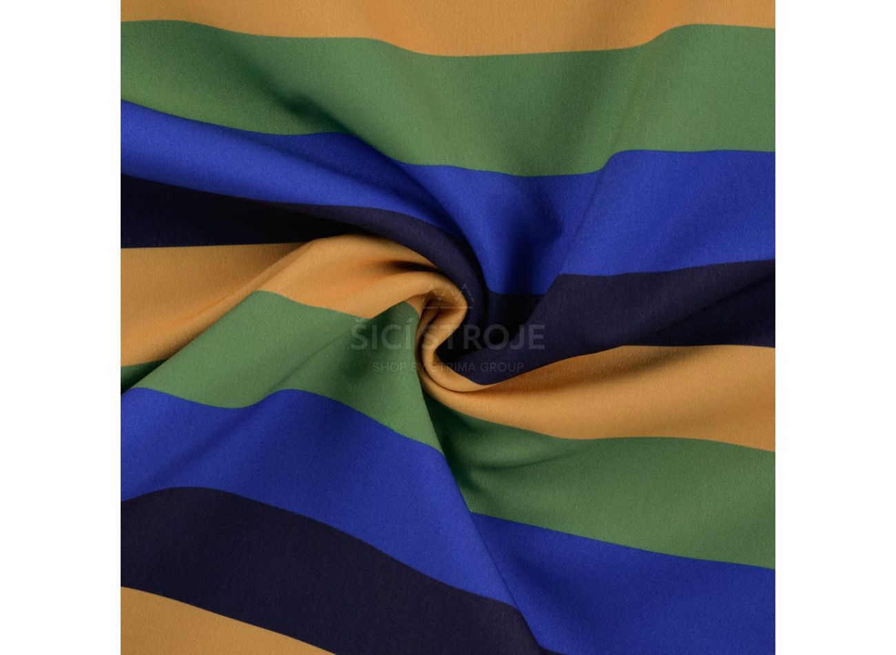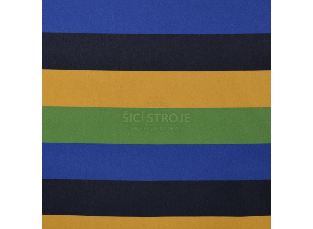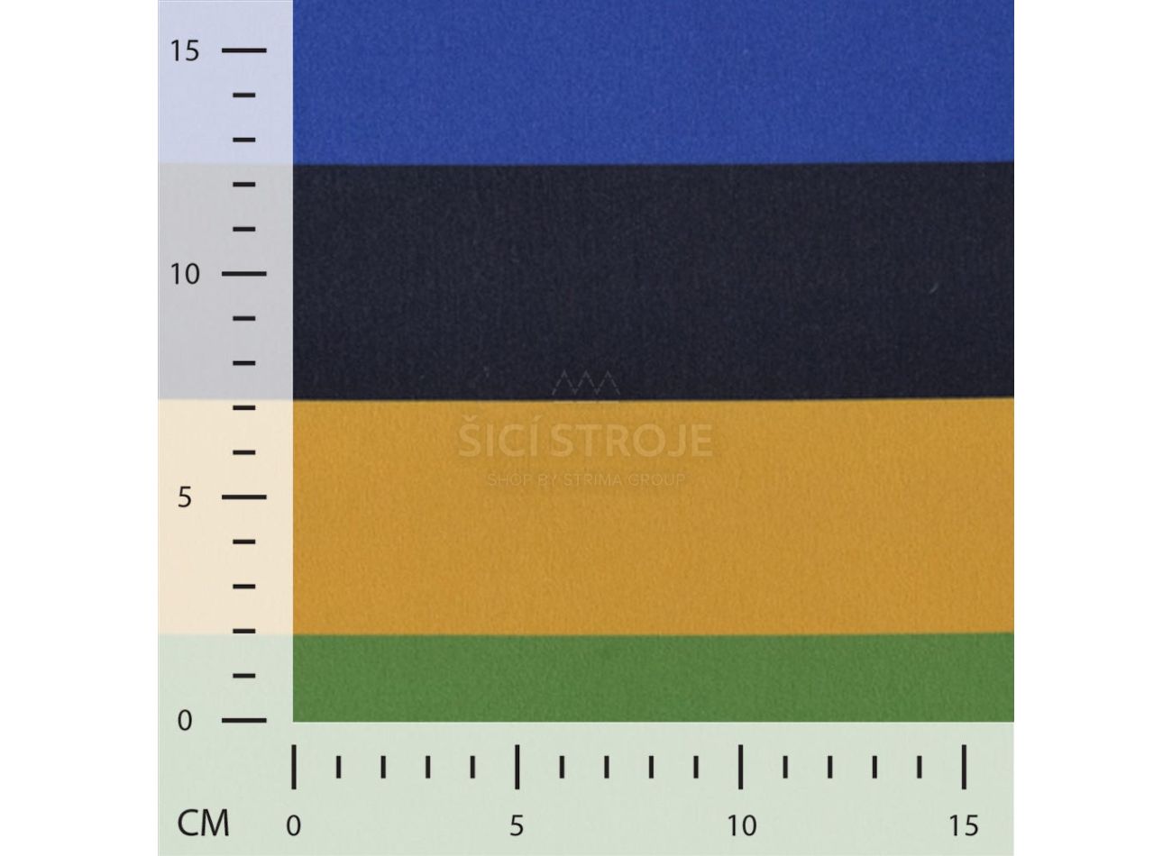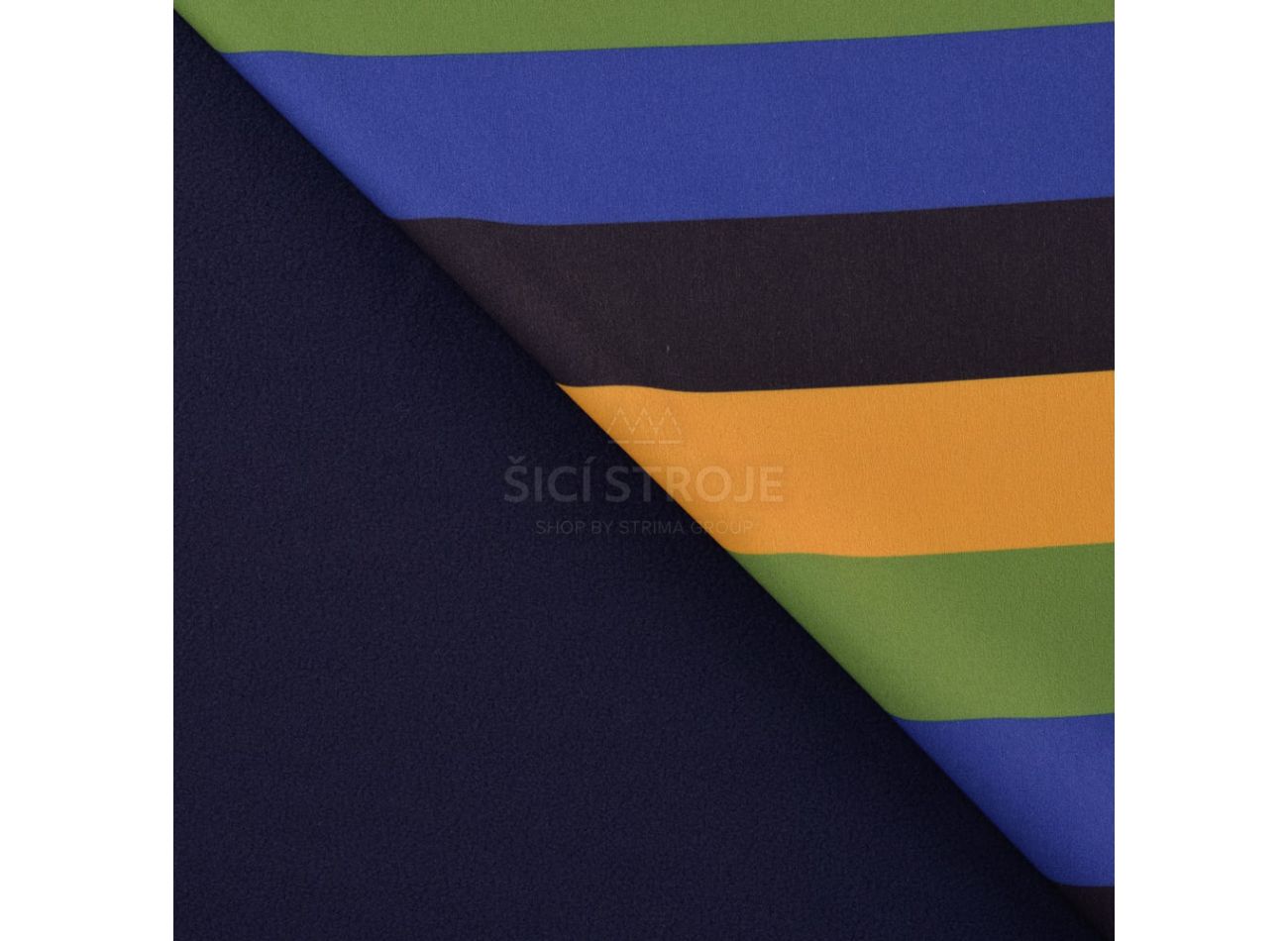 Soft Shell Digital Print, 99% polyester, 1% elastan, minimálna šírka 145 cm, gramáž 250 g/m2, vzor stripe, farba navy/green/ochre