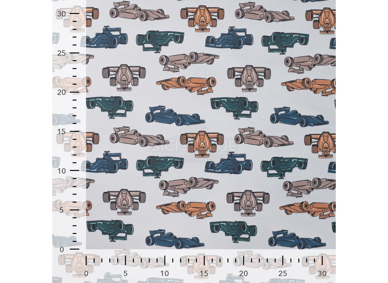 Soft Shell Digital, 99% polyester, 1% elastan, minimálna šírka 145 cm, gramáž 310 g/m2, vzor race cars, farba caramel