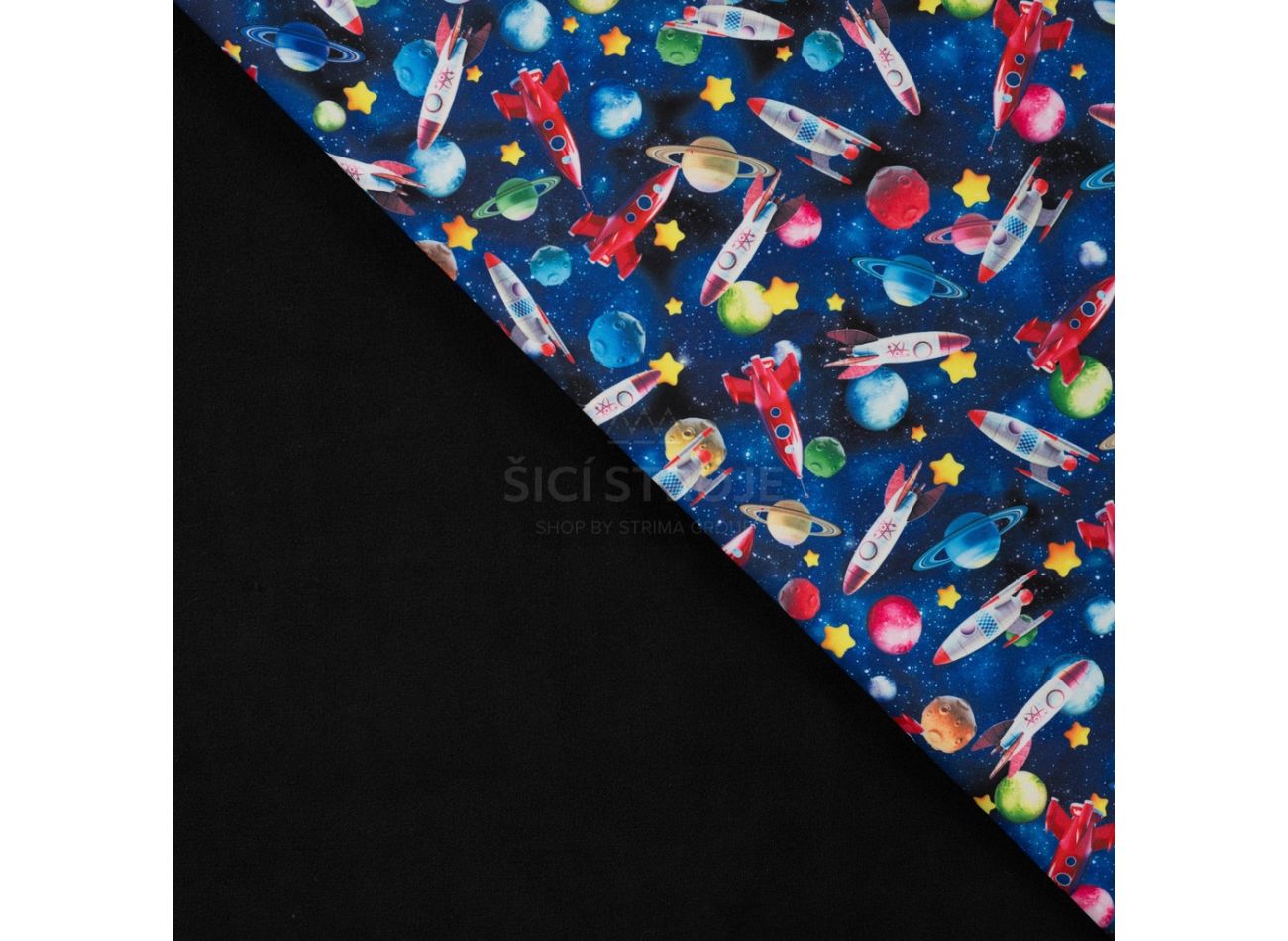 Soft Shell Digital, 99% polyester, 1% elastan, minimálna šírka 145 cm, gramáž 310 g/m2, vzor space, farba black