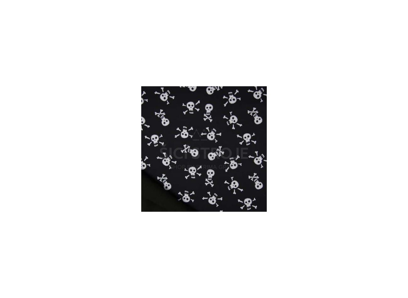 Soft Shell Print, 97% polyester, 3% elastan, minimálna šírka 145 cm, gramáž 250 g/m2, vzor skulls, farba black