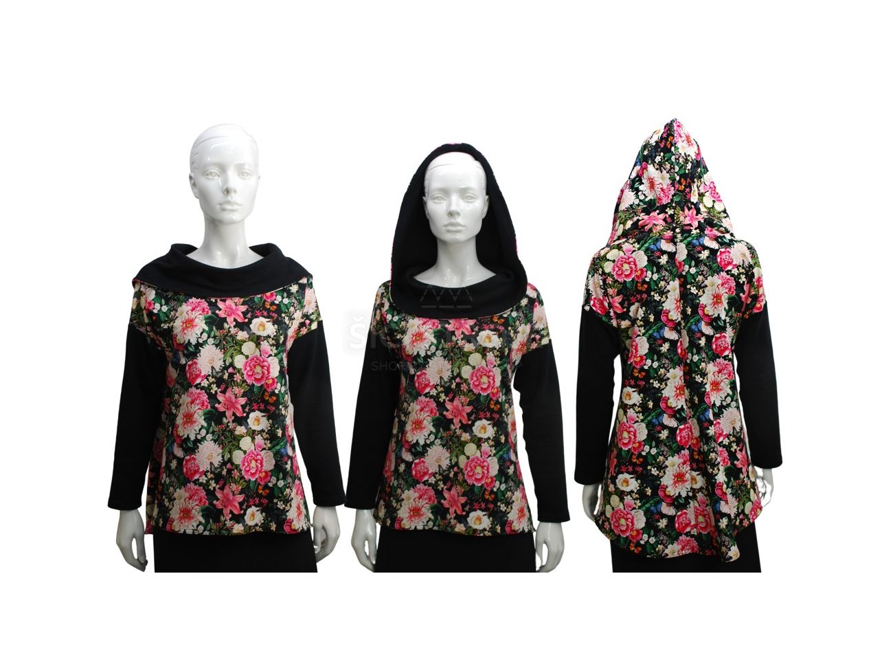 Predĺžený ZD so stredovým švom vytvára veľmi slušivú siluetu aj pre plnoštíhle postavy. Mikina má obľúbený kapucoliemec, ktorý poznáte zo Šarloty. Tento je konštruovaný ako viac uzavretý, takže nezasahuje až na ramená.