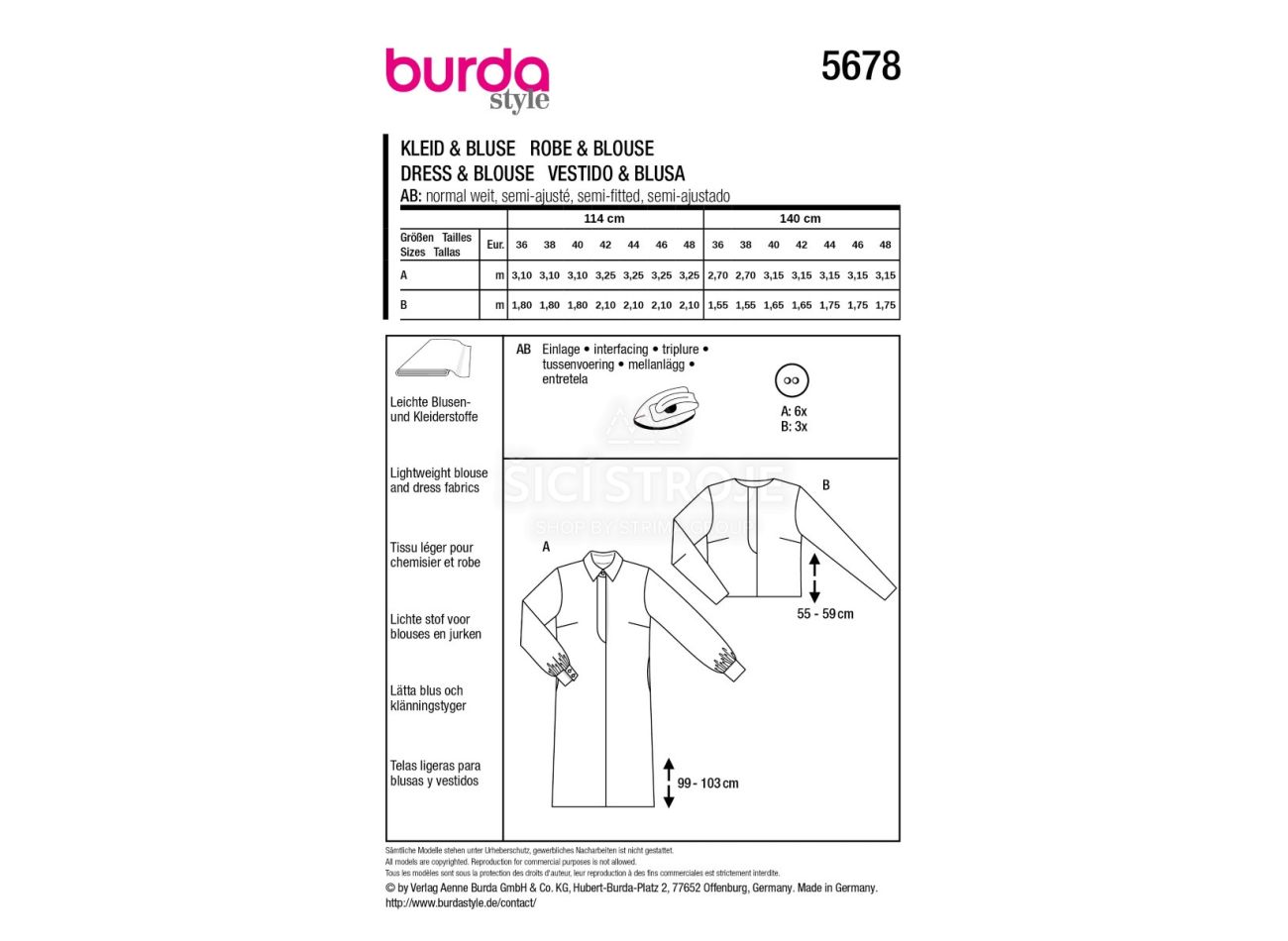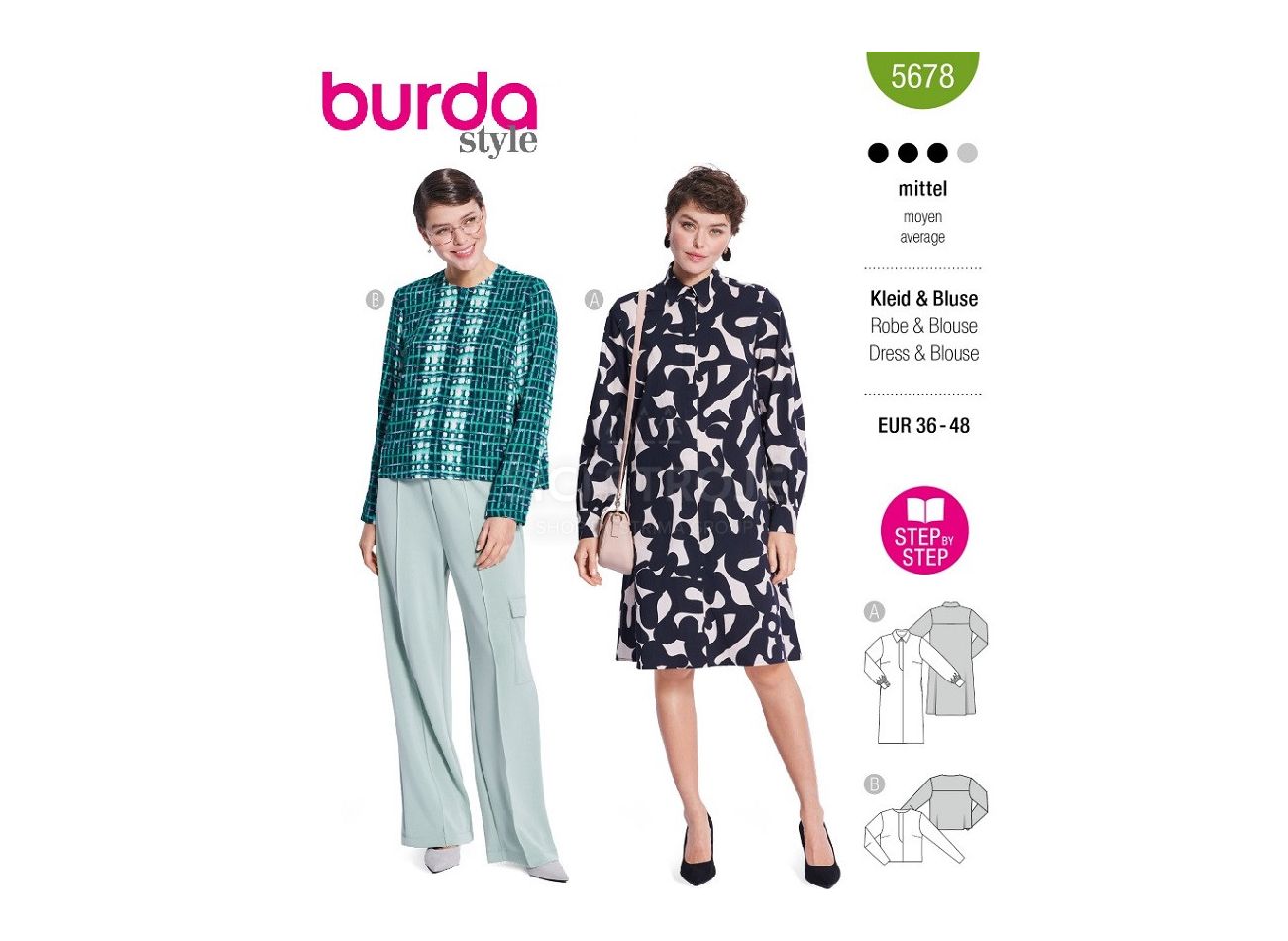 Strih Burda 5678 - Splývavé košeľové šaty, košeľová blúzka