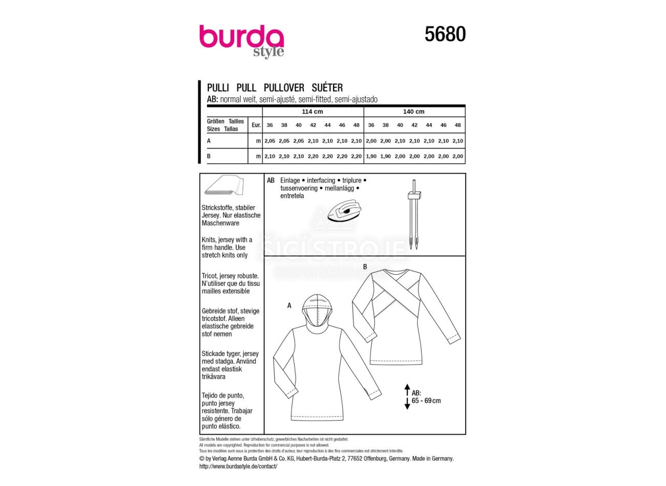 Strih (strihová príloha - všetko je starostlivo zabalené - Pozor - Strihy sú chránené autorskými právami spoločnosti Verlag Anne Burda GmbH & Co., preto nemožno ROZBALENÝ strih vrátiť. Reprodukcia a kopírovanie sú pre komerčné účely zakázané).
