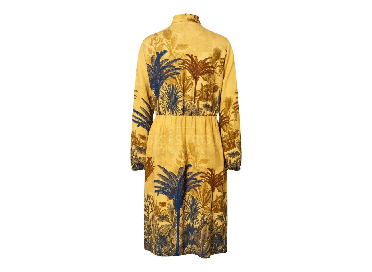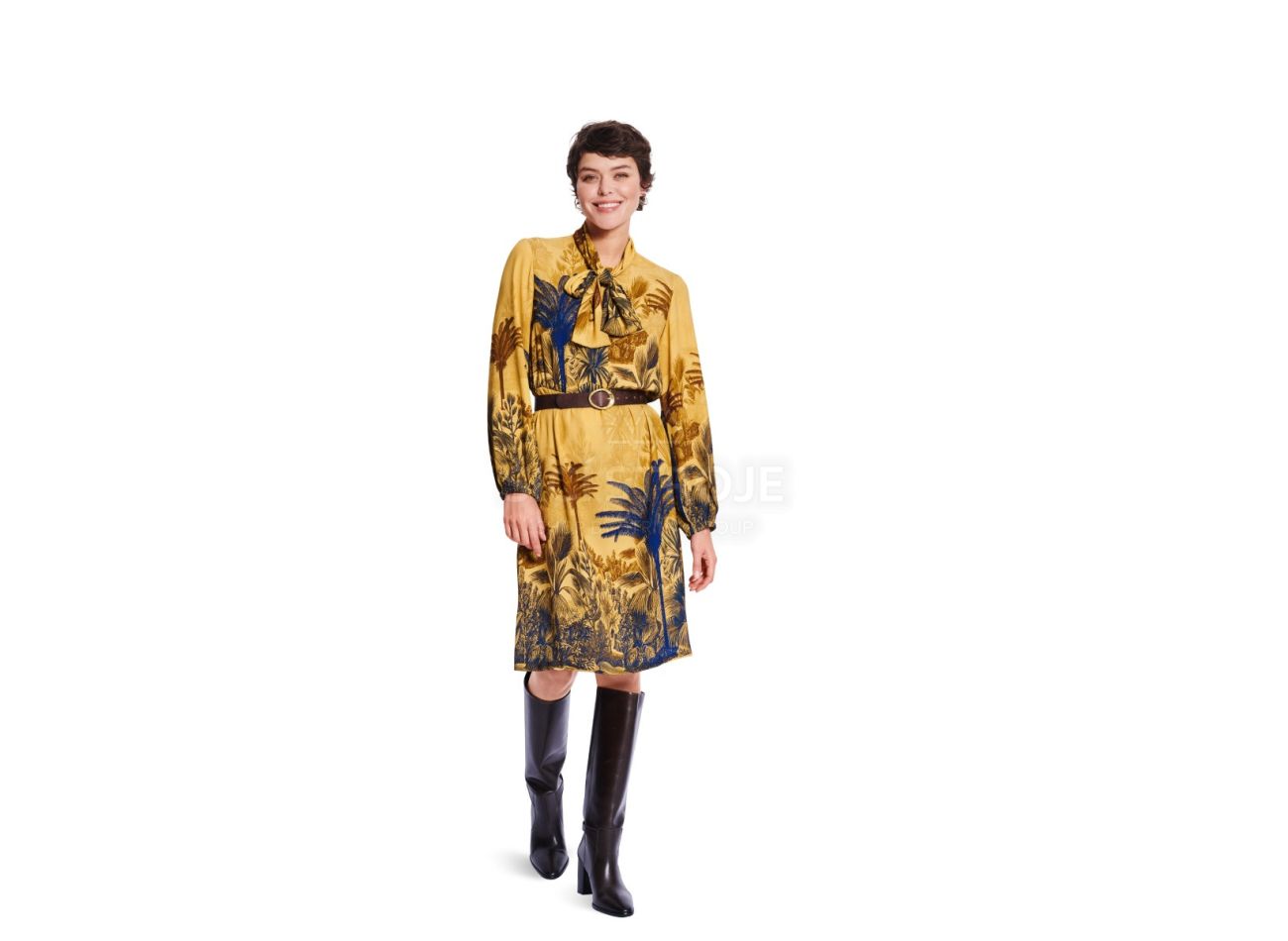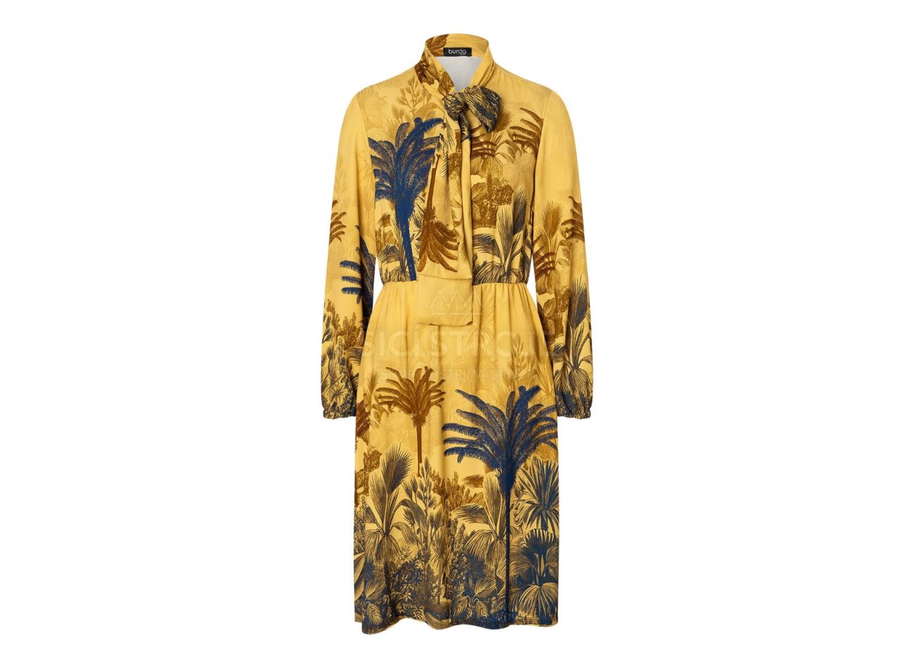 Strih Burda 5696 - Šaty s vysokým golierom, šaty s gumou v páse..