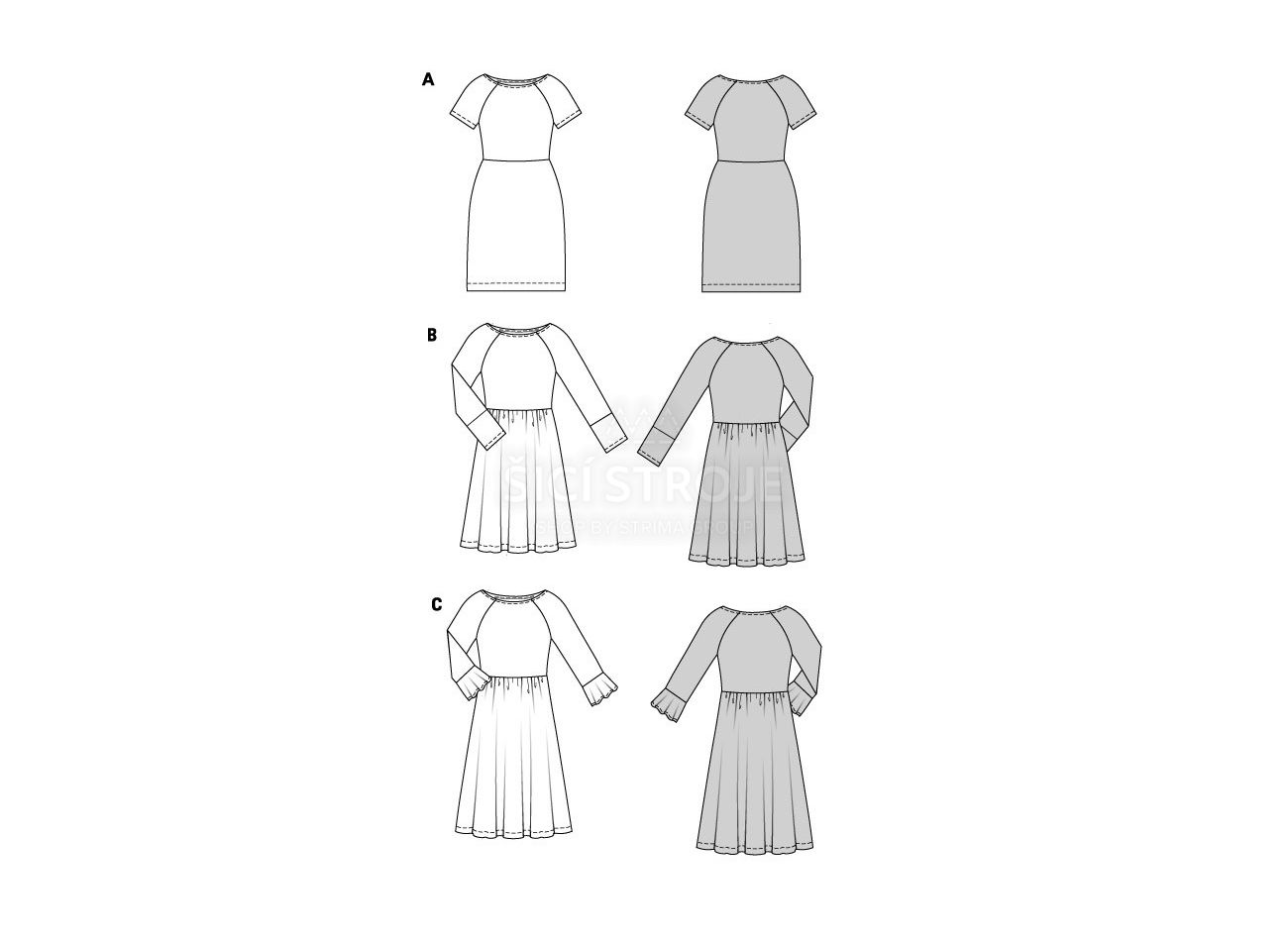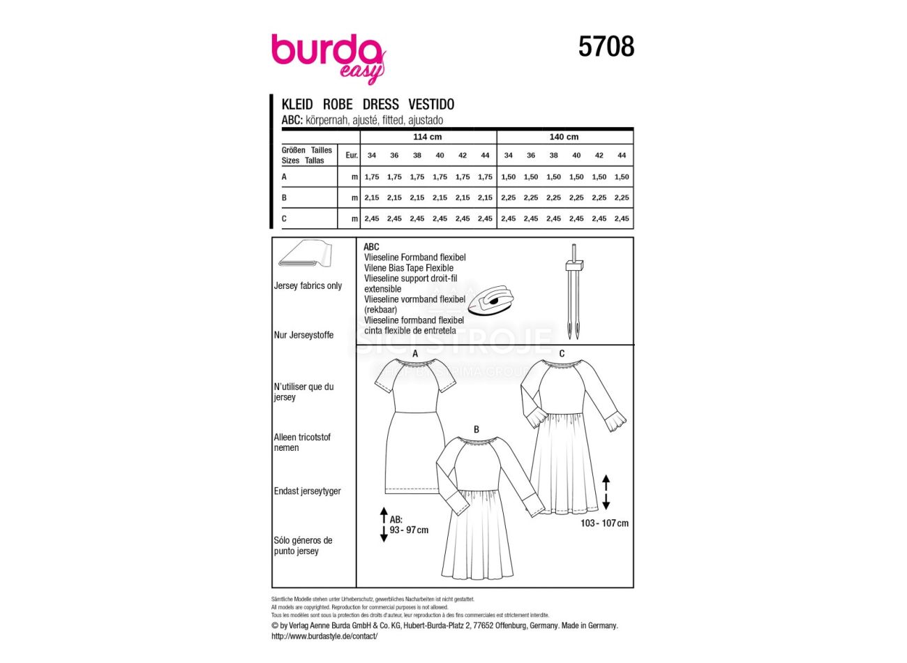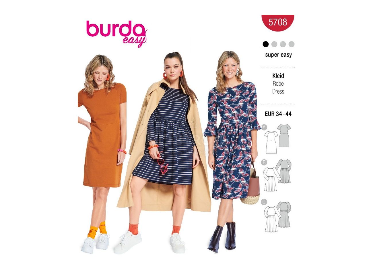Strih Burda 5708 - Šaty s rozšírenou sukňou, puzdrové šaty, denné šaty